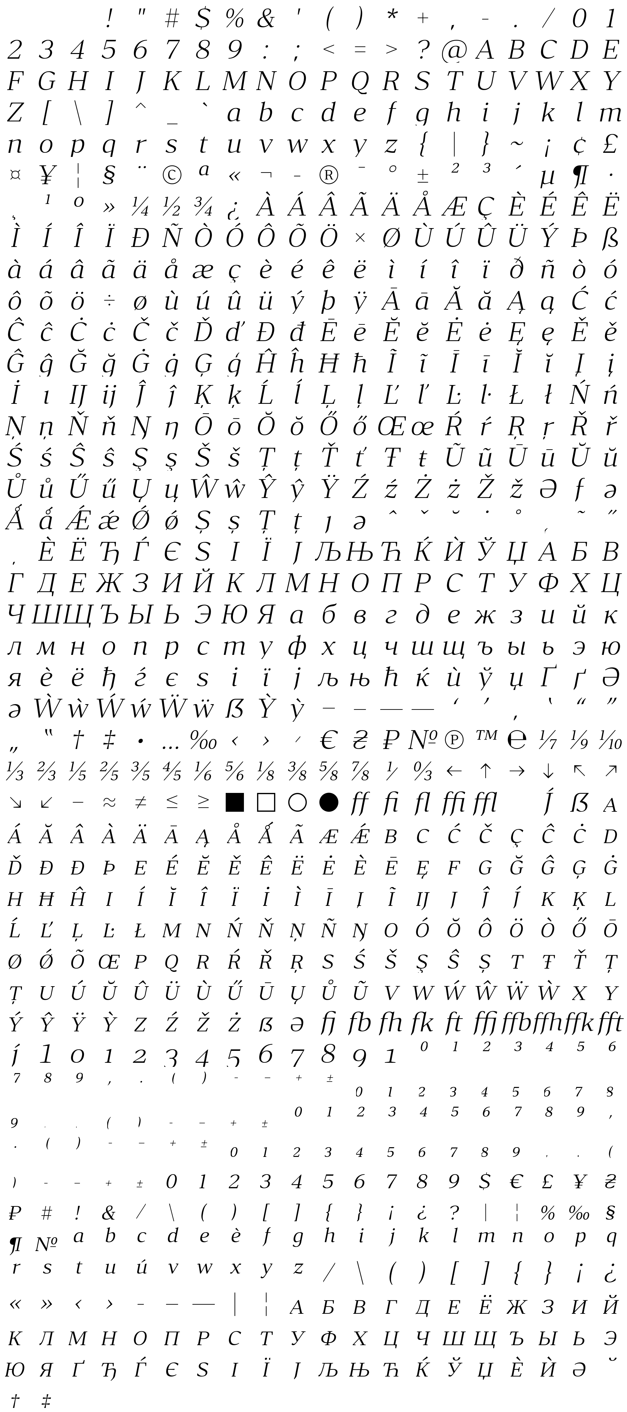 Due to the nature of thumbs' generation process, some of the glyphs in the glyph map may appear cropped.
