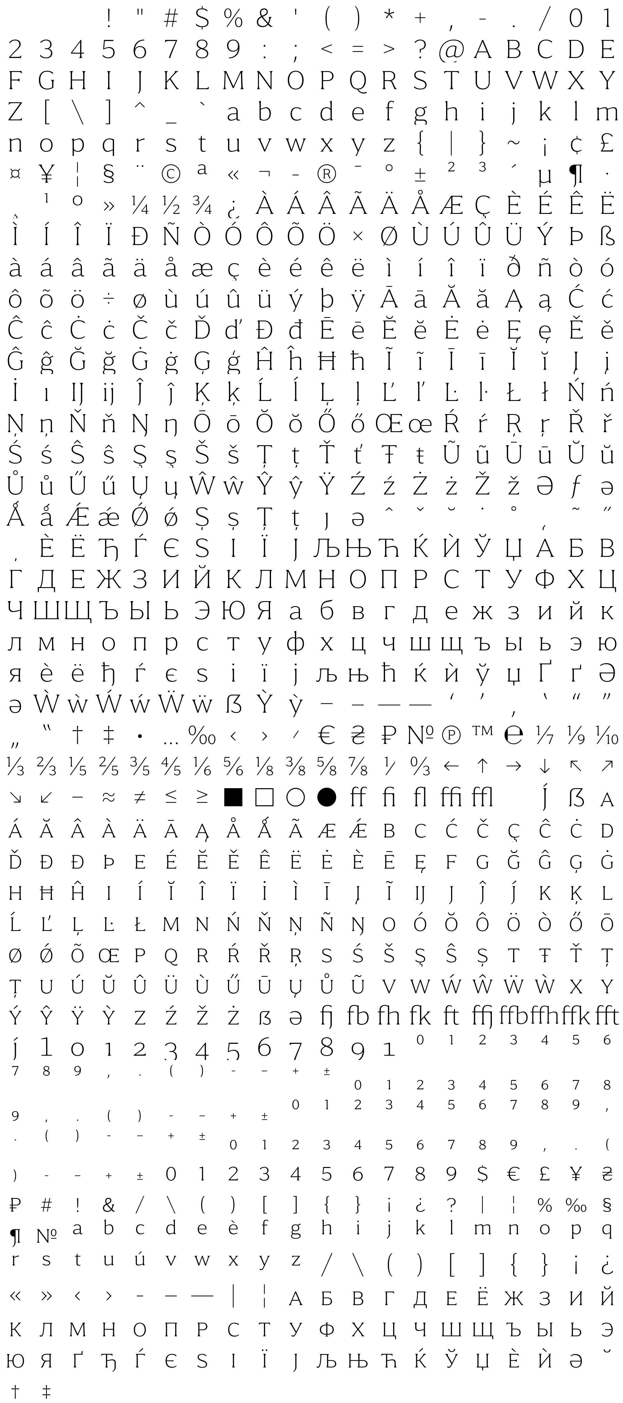 Due to the nature of thumbs' generation process, some of the glyphs in the glyph map may appear cropped.