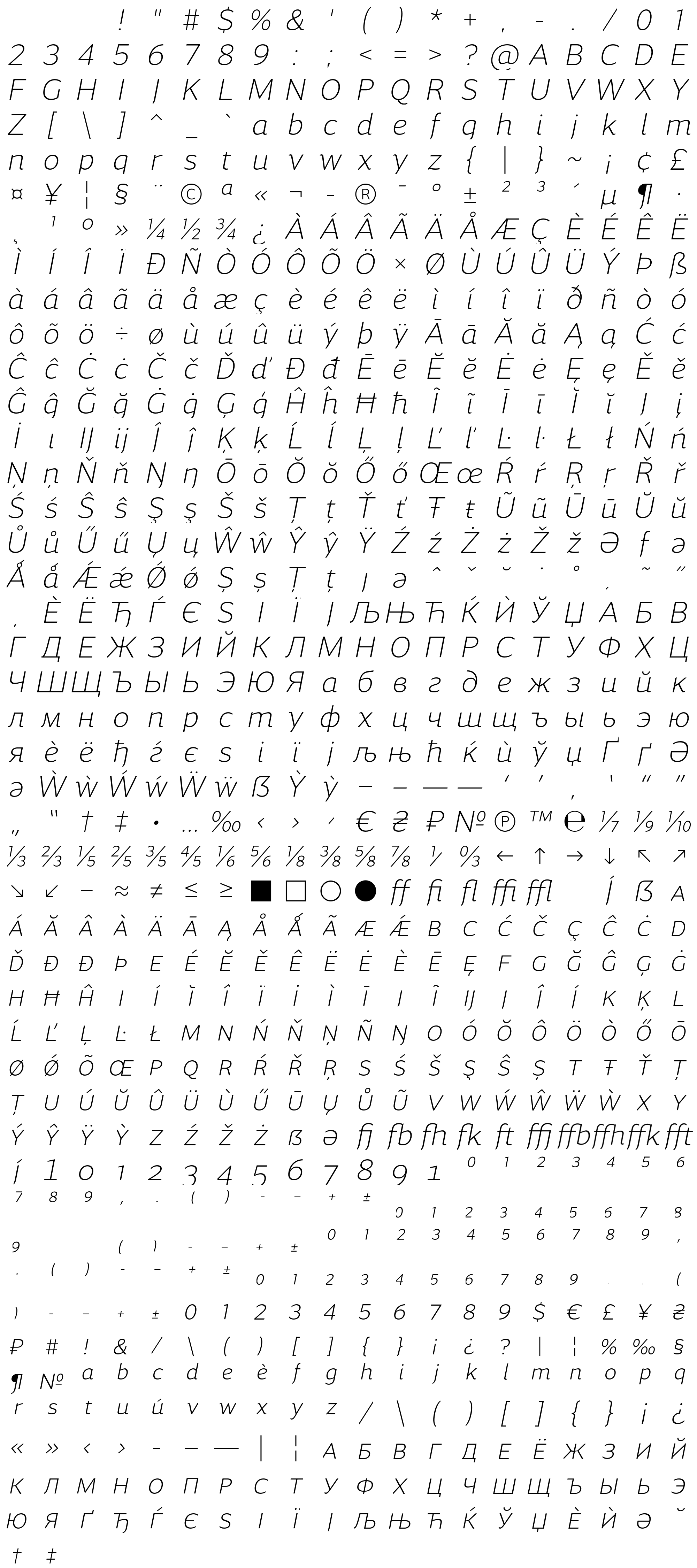 Due to the nature of thumbs' generation process, some of the glyphs in the glyph map may appear cropped.