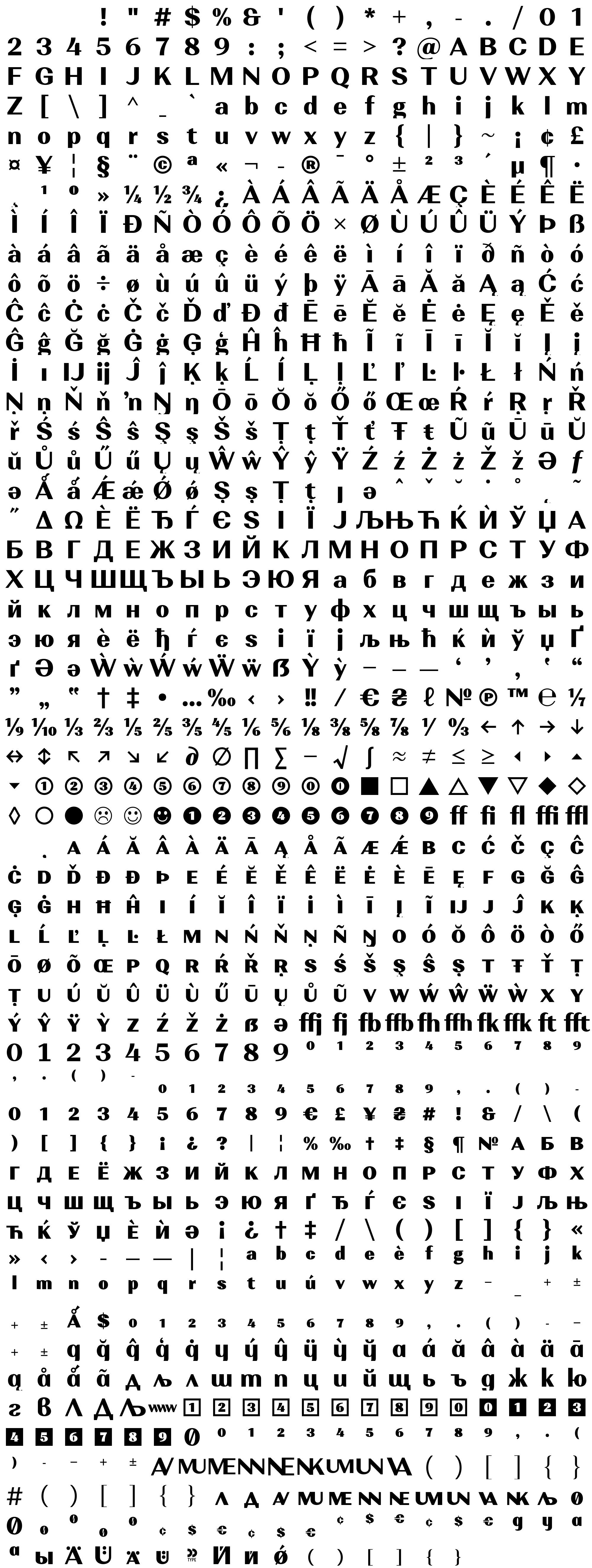 Due to the nature of thumbs' generation process, some of the glyphs in the glyph map may appear cropped.