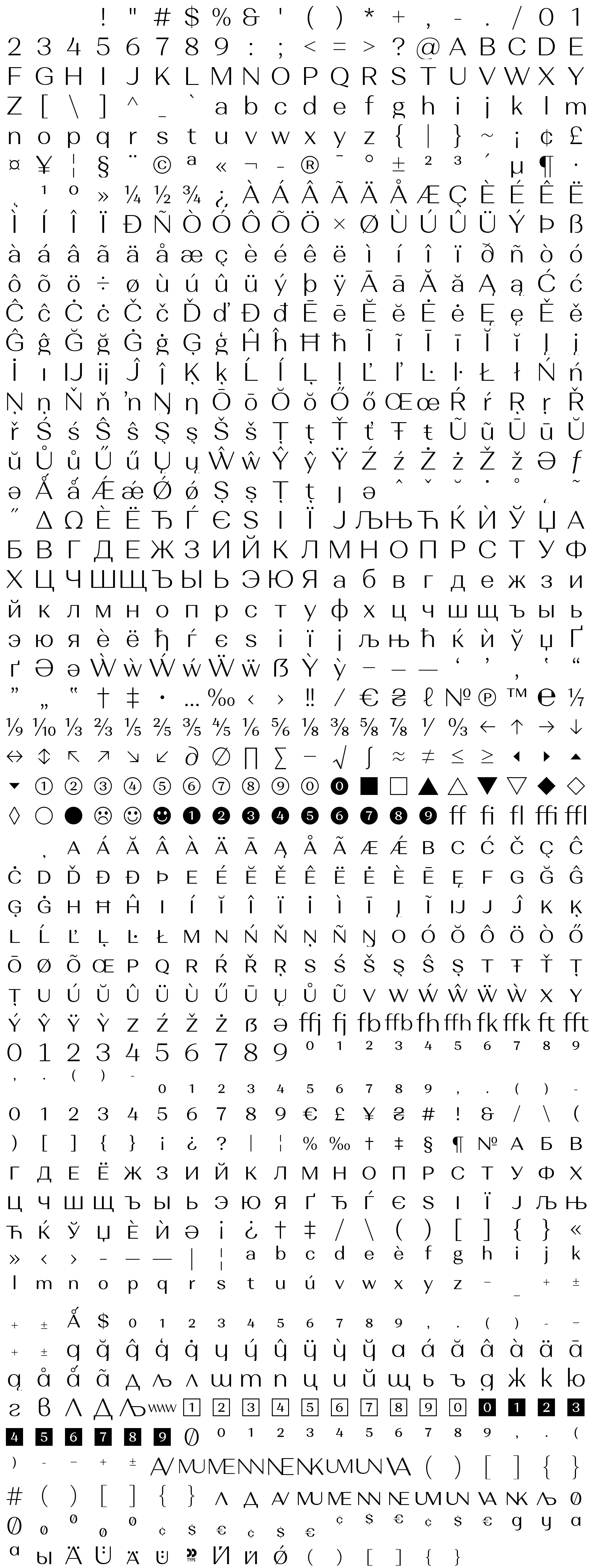 Due to the nature of thumbs' generation process, some of the glyphs in the glyph map may appear cropped.