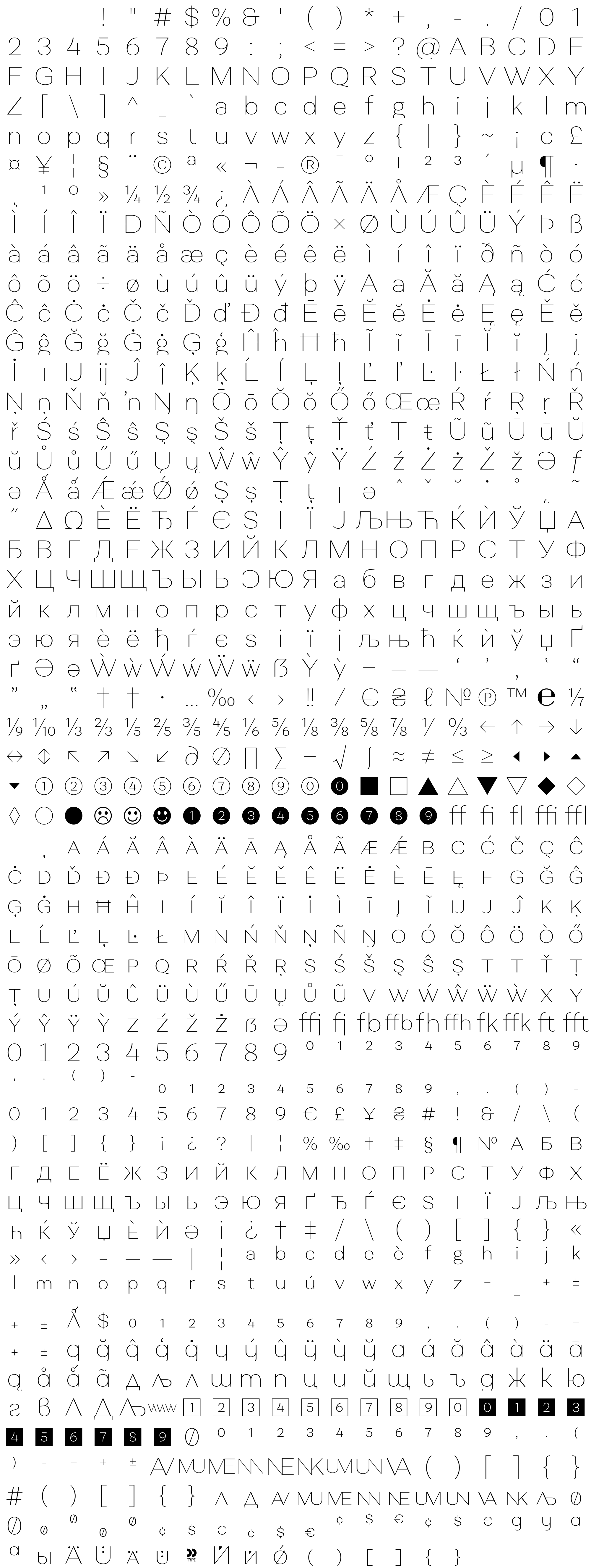 Due to the nature of thumbs' generation process, some of the glyphs in the glyph map may appear cropped.