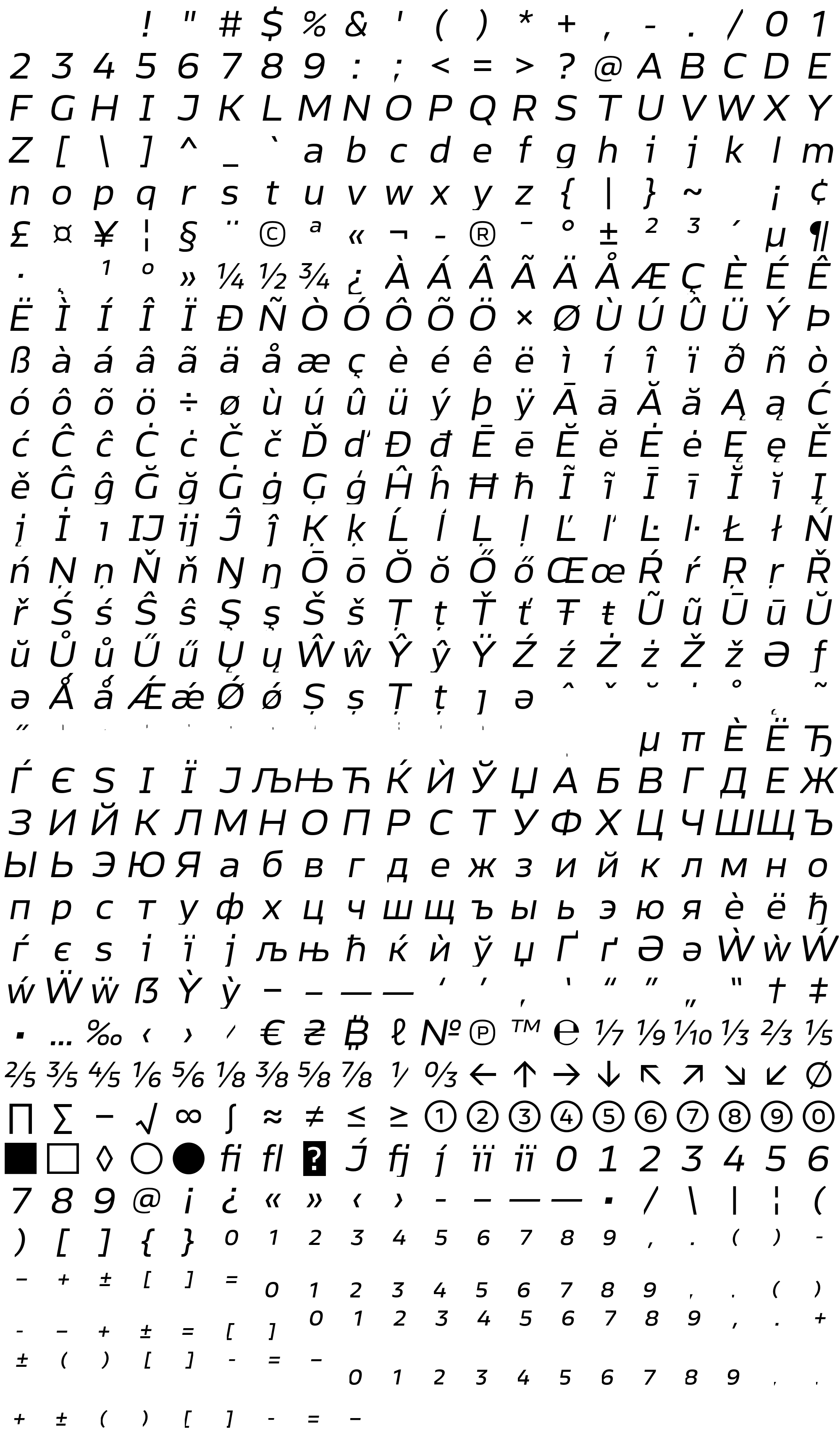 Due to the nature of thumbs' generation process, some of the glyphs in the glyph map may appear cropped.