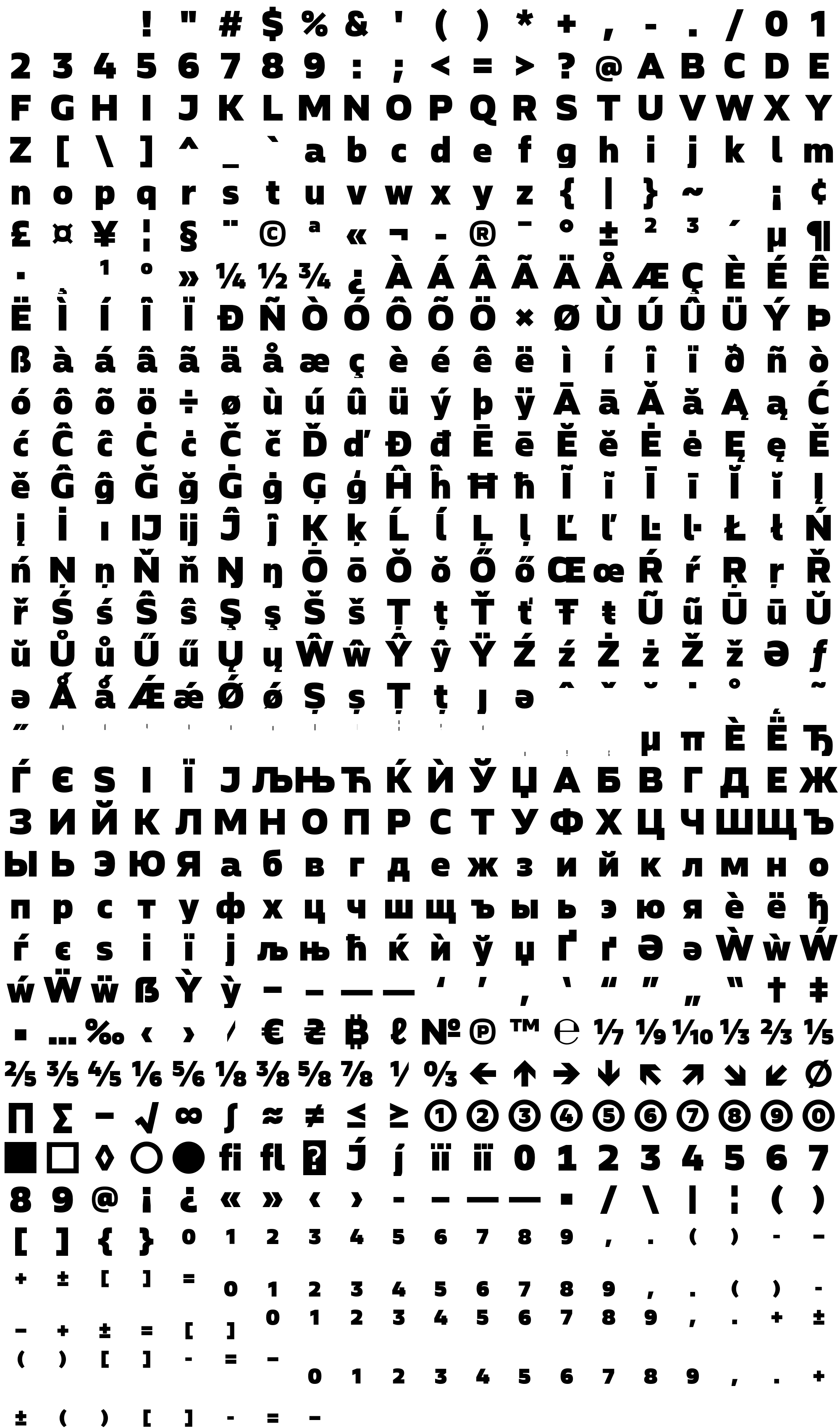 Due to the nature of thumbs' generation process, some of the glyphs in the glyph map may appear cropped.