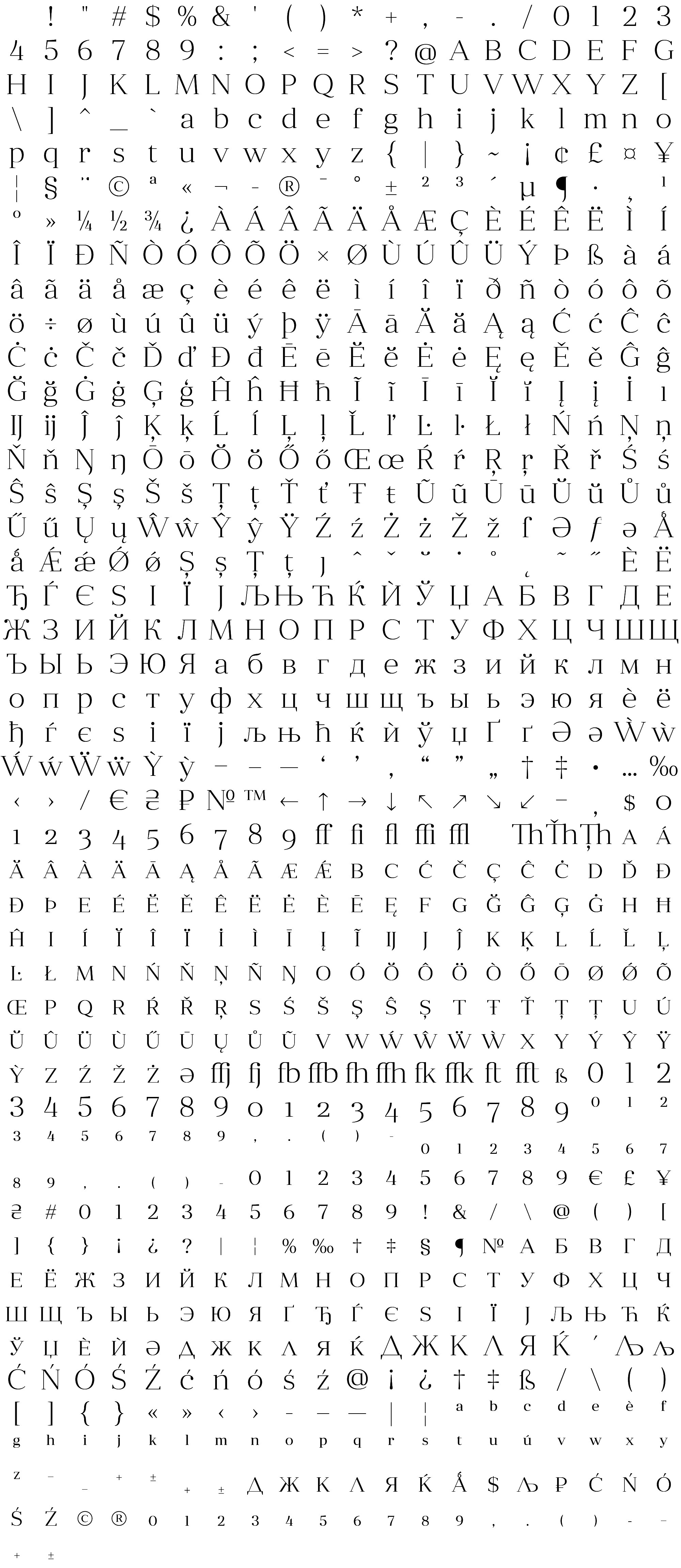 Due to the nature of thumbs' generation process, some of the glyphs in the glyph map may appear cropped.