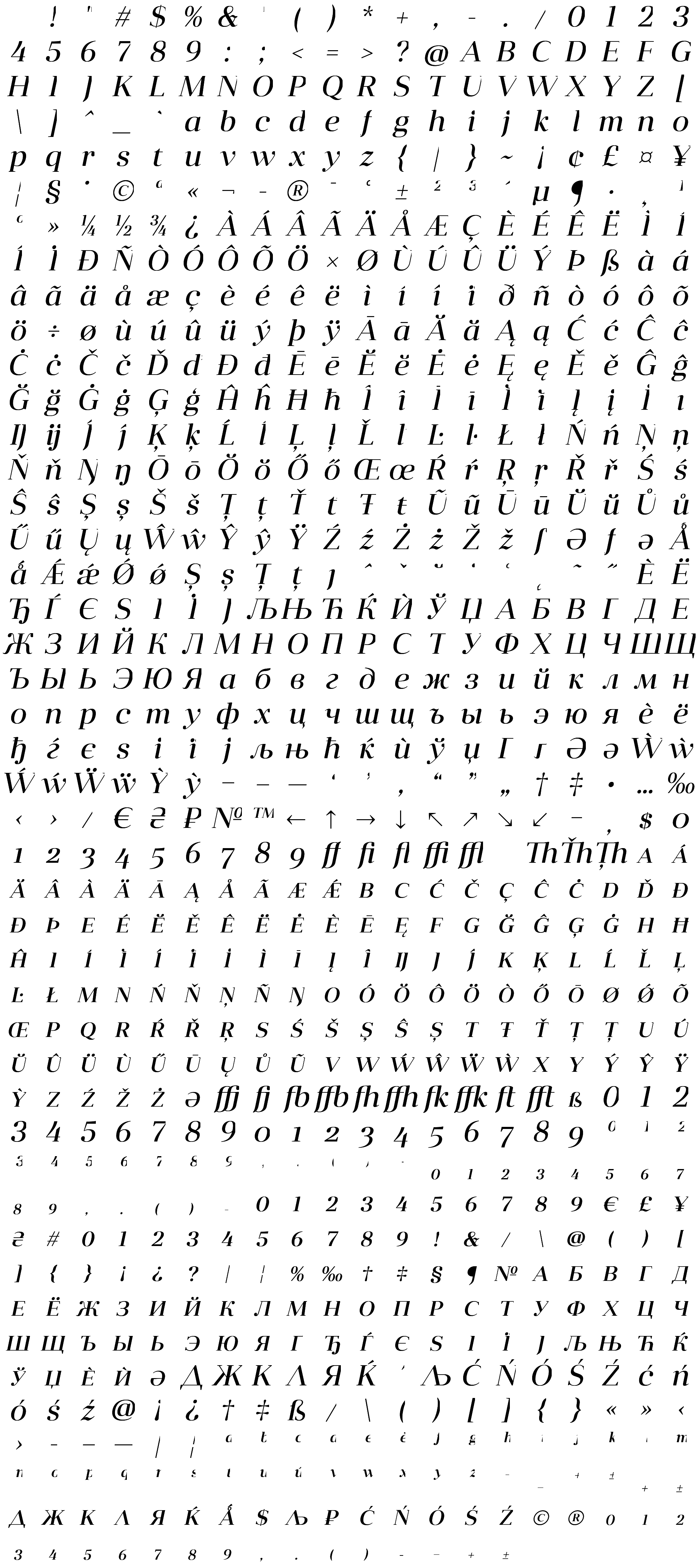 Due to the nature of thumbs' generation process, some of the glyphs in the glyph map may appear cropped.