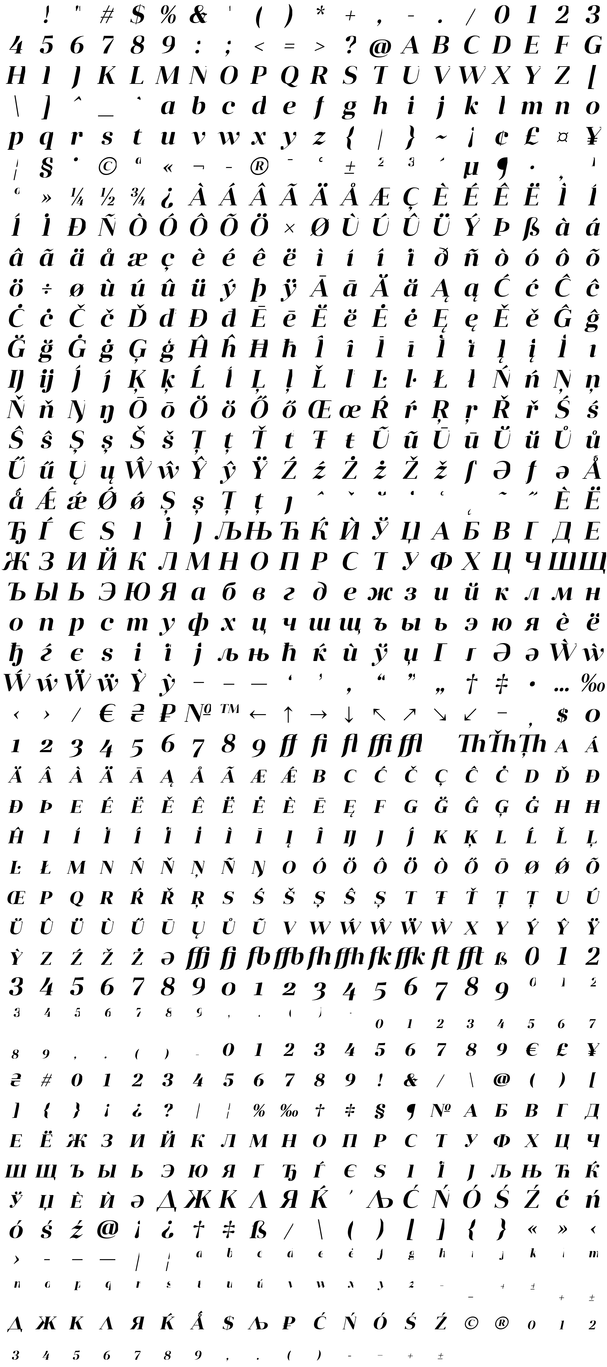 Due to the nature of thumbs' generation process, some of the glyphs in the glyph map may appear cropped.