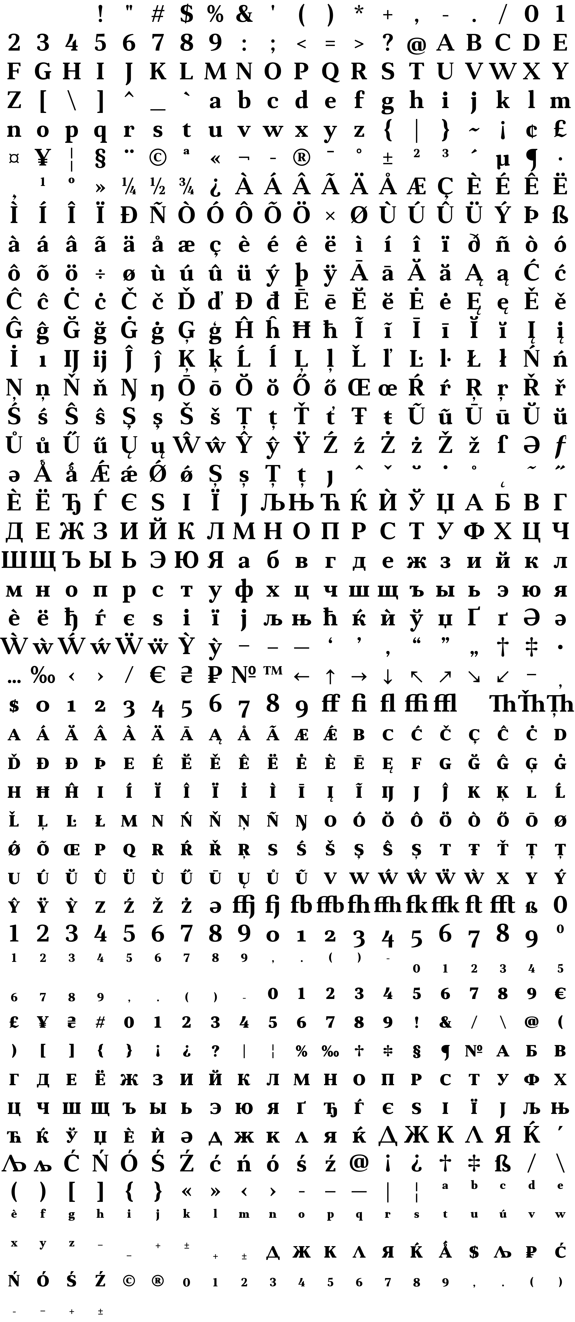 Due to the nature of thumbs' generation process, some of the glyphs in the glyph map may appear cropped.