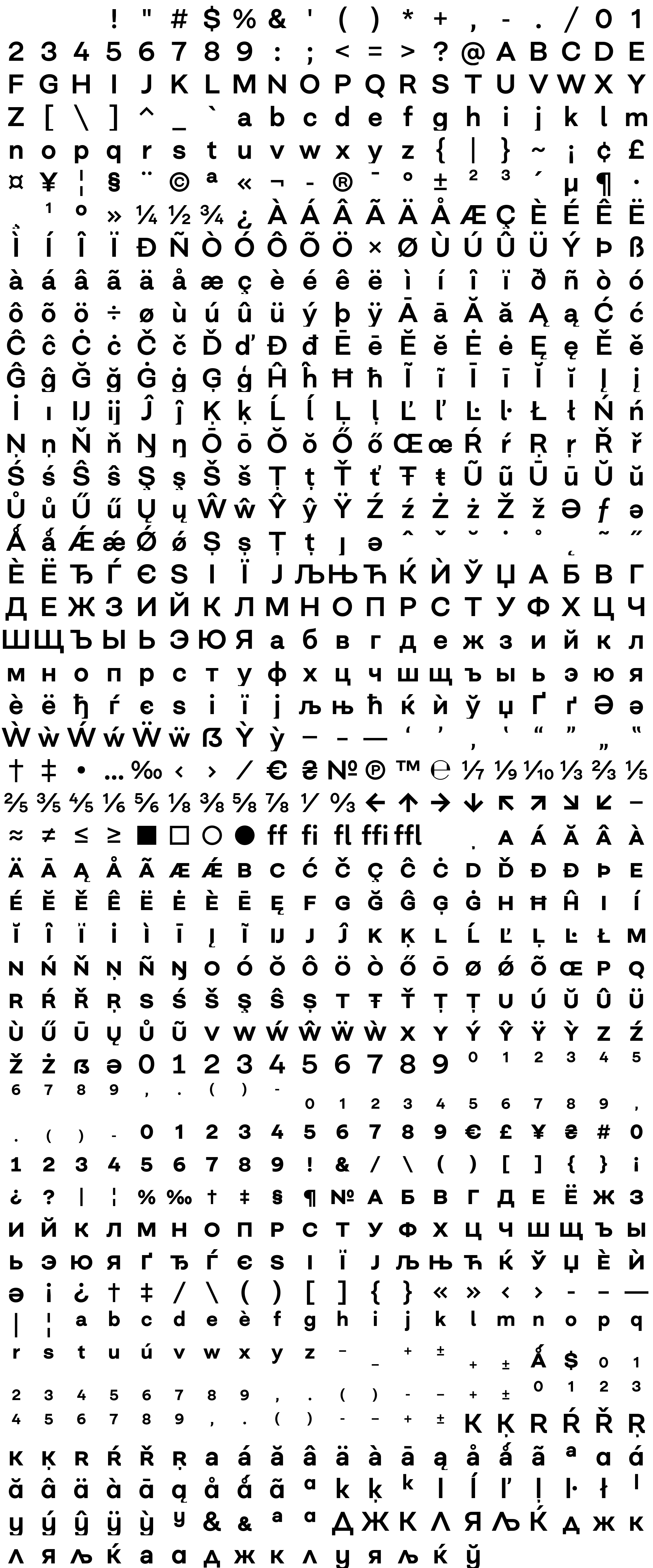 Due to the nature of thumbs' generation process, some of the glyphs in the glyph map may appear cropped.