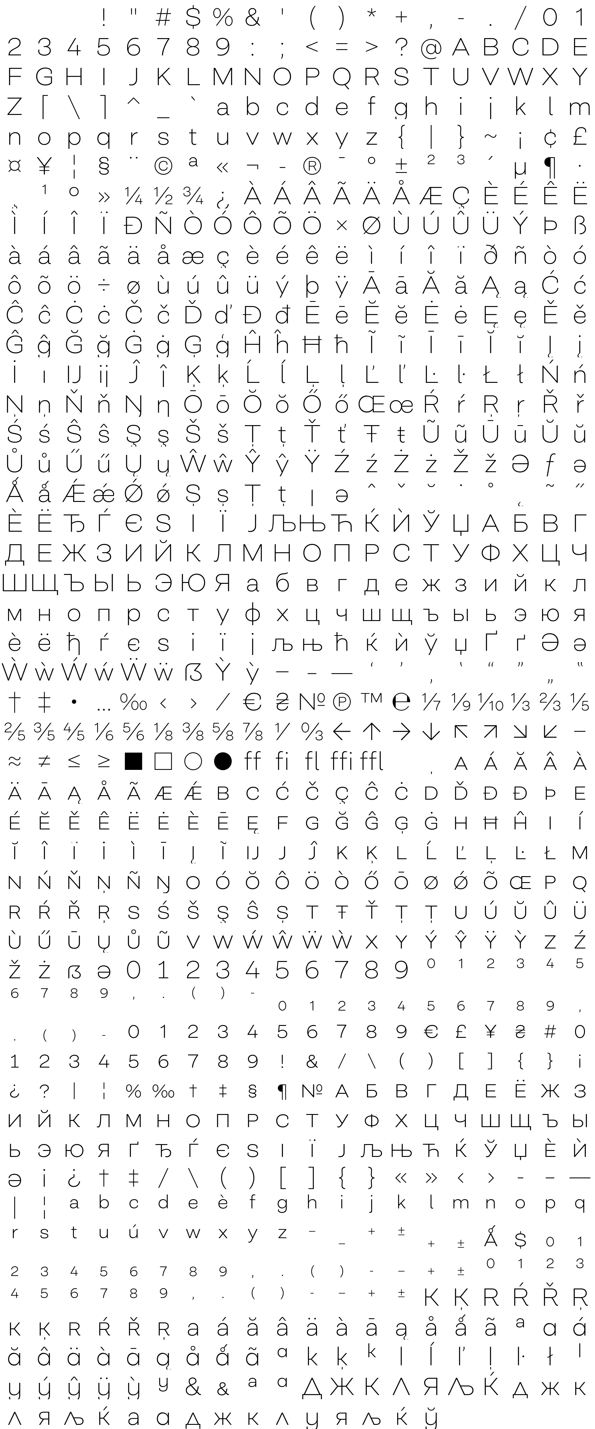 Due to the nature of thumbs' generation process, some of the glyphs in the glyph map may appear cropped.