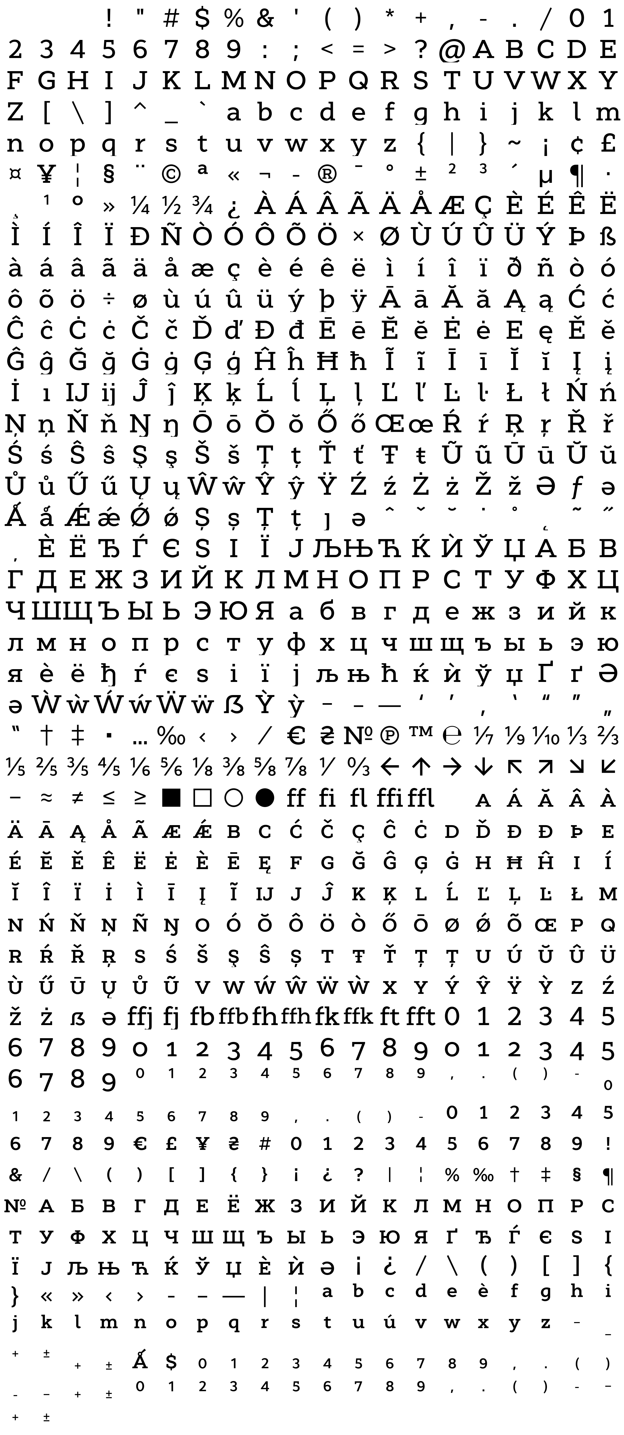 Due to the nature of thumbs' generation process, some of the glyphs in the glyph map may appear cropped.
