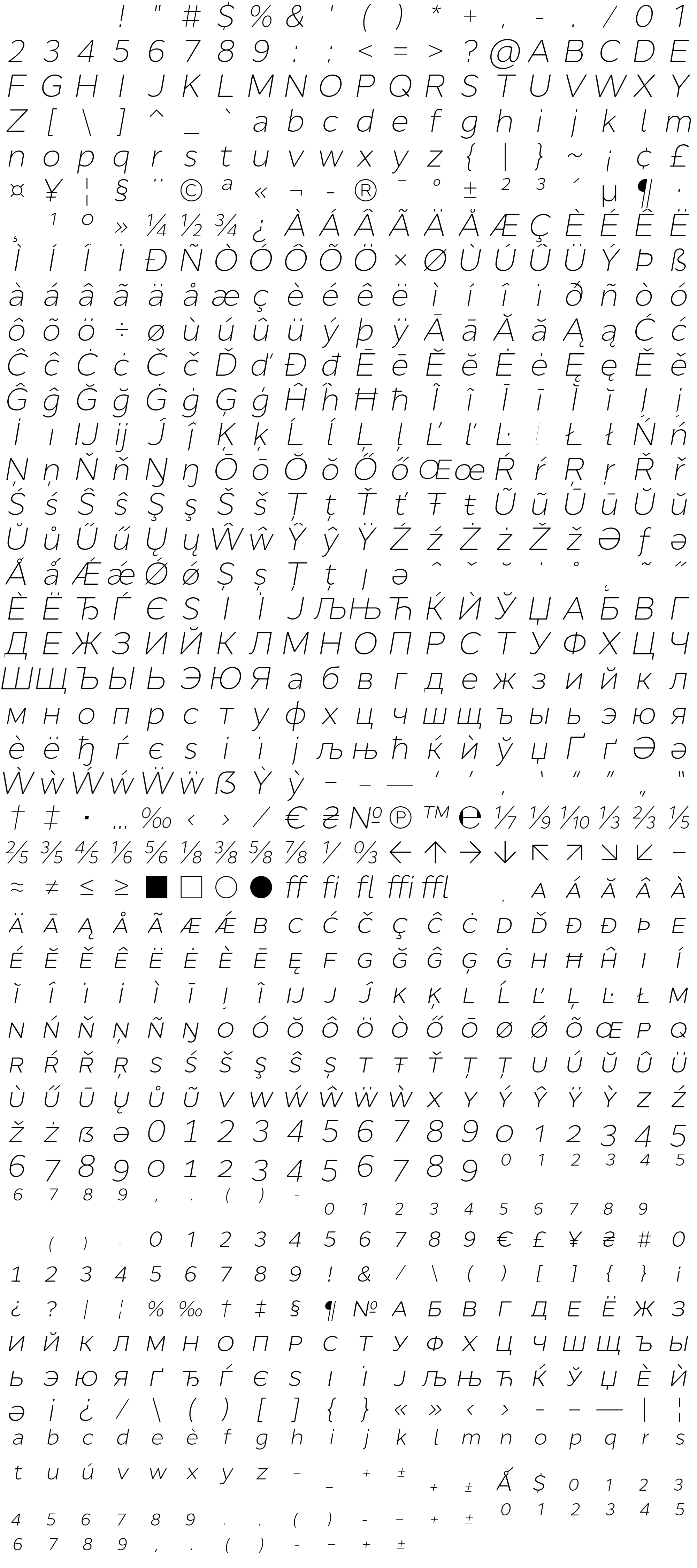 Due to the nature of thumbs' generation process, some of the glyphs in the glyph map may appear cropped.