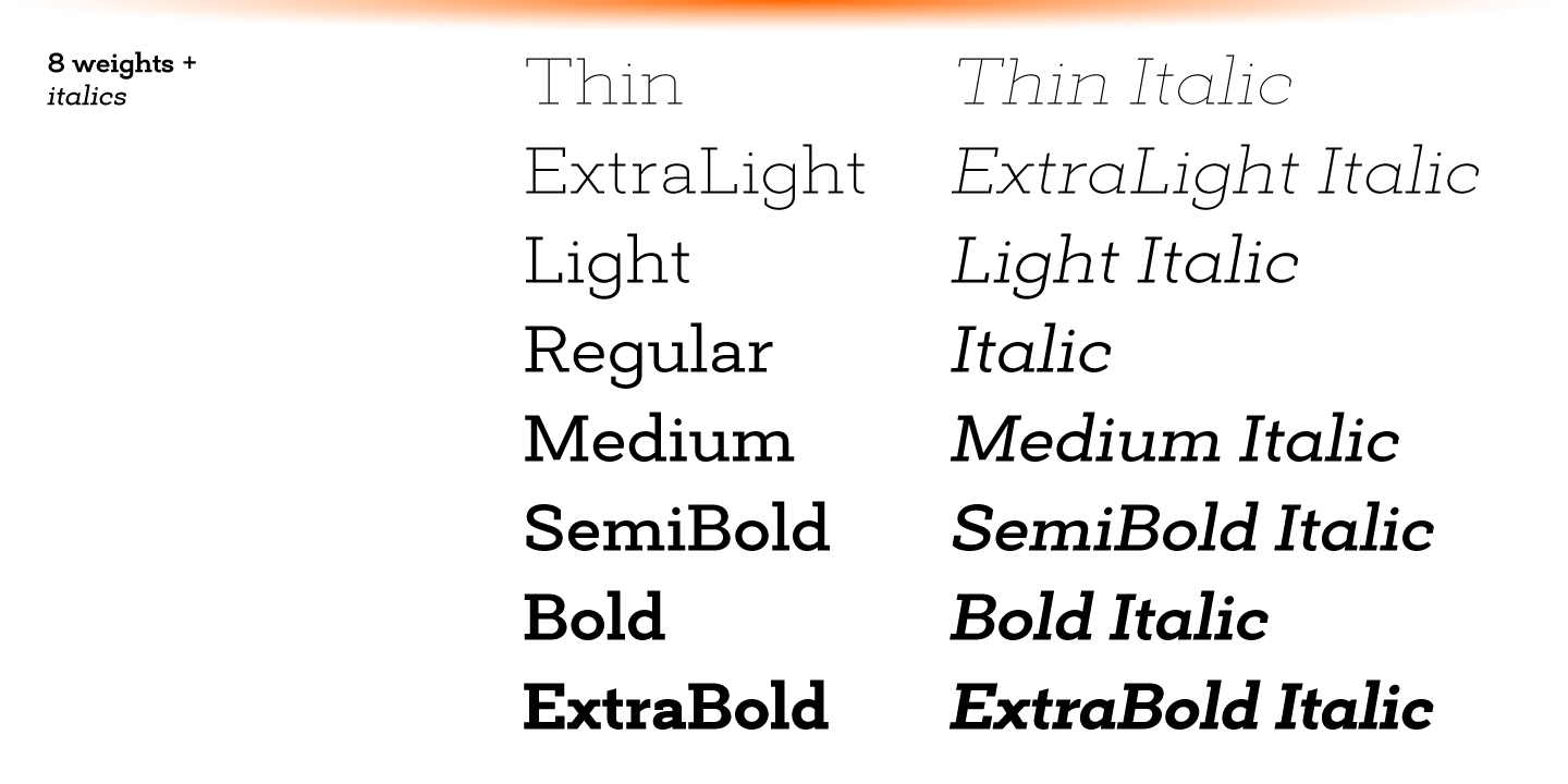 Deposit Pro consists of 16 styles (8 weights and their corresponding italics) and features broad language support including all European Latin and Cyrillic languages. It also sports plenty of OpenType features including 6 sets of digits, fractions, small caps, ordinals, all-cap punctuation, and contextual forms for ‘f’, eliminating the need for too many ligature