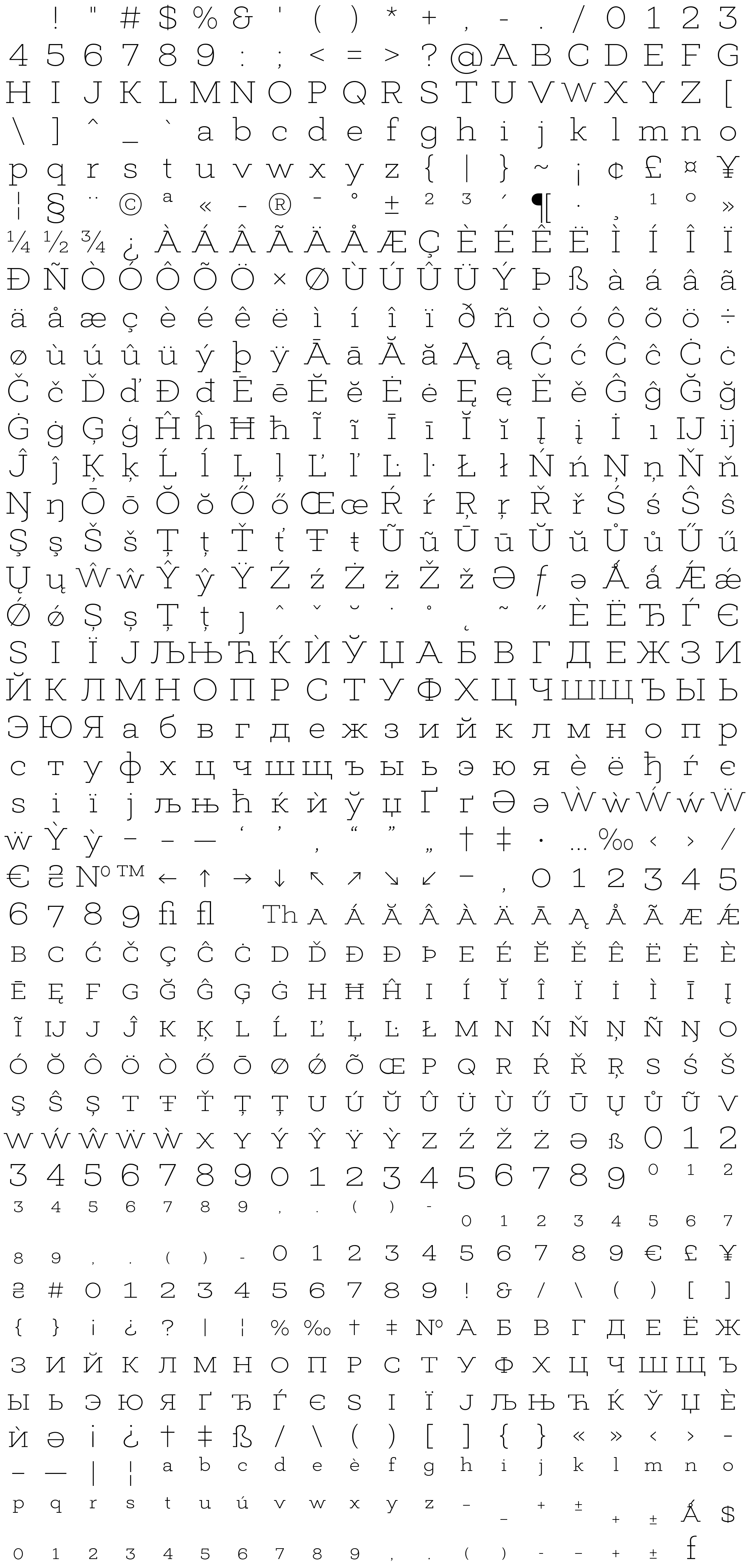 Due to the nature of thumbs' generation process, some of the glyphs in the glyph map may appear cropped.