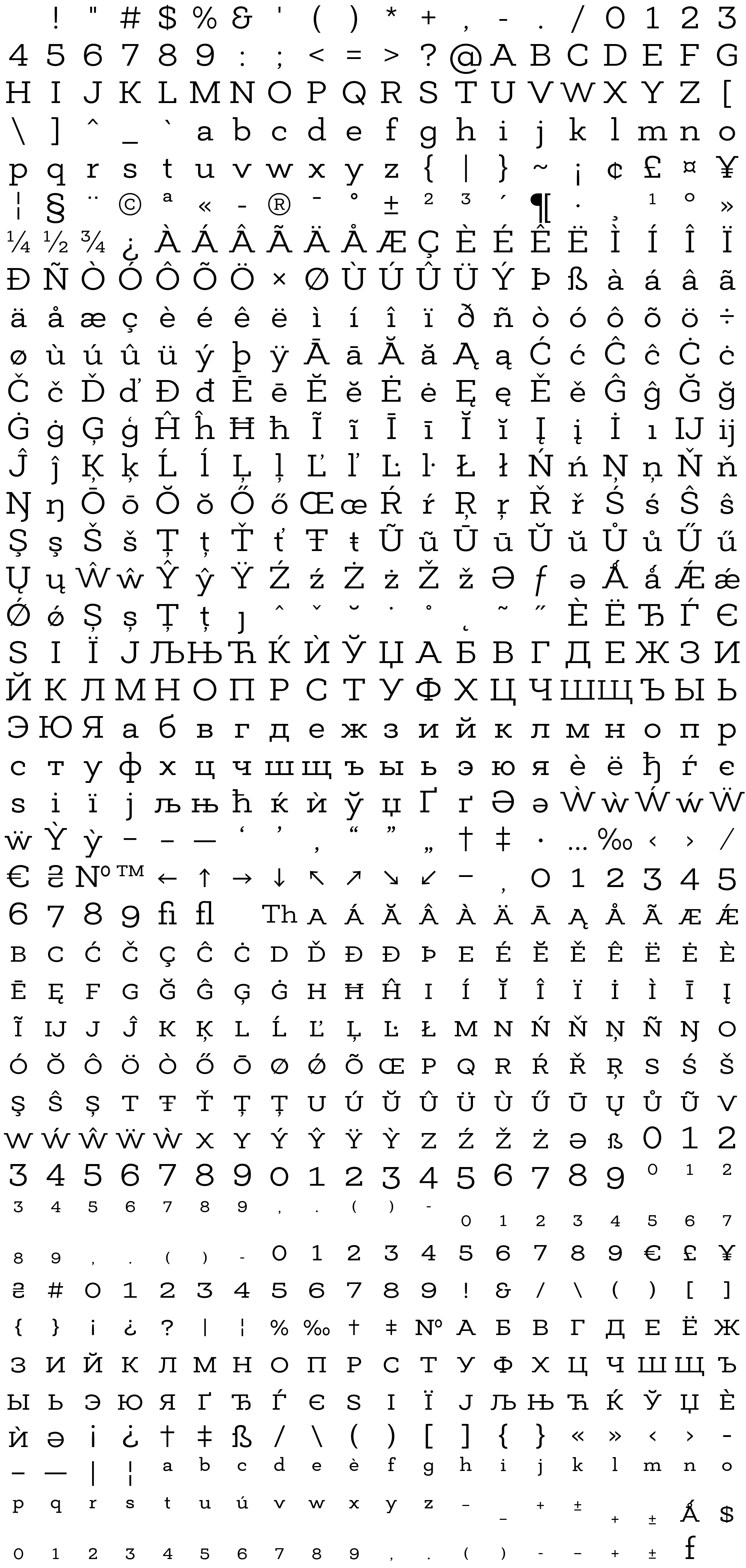 Due to the nature of thumbs' generation process, some of the glyphs in the glyph map may appear cropped.