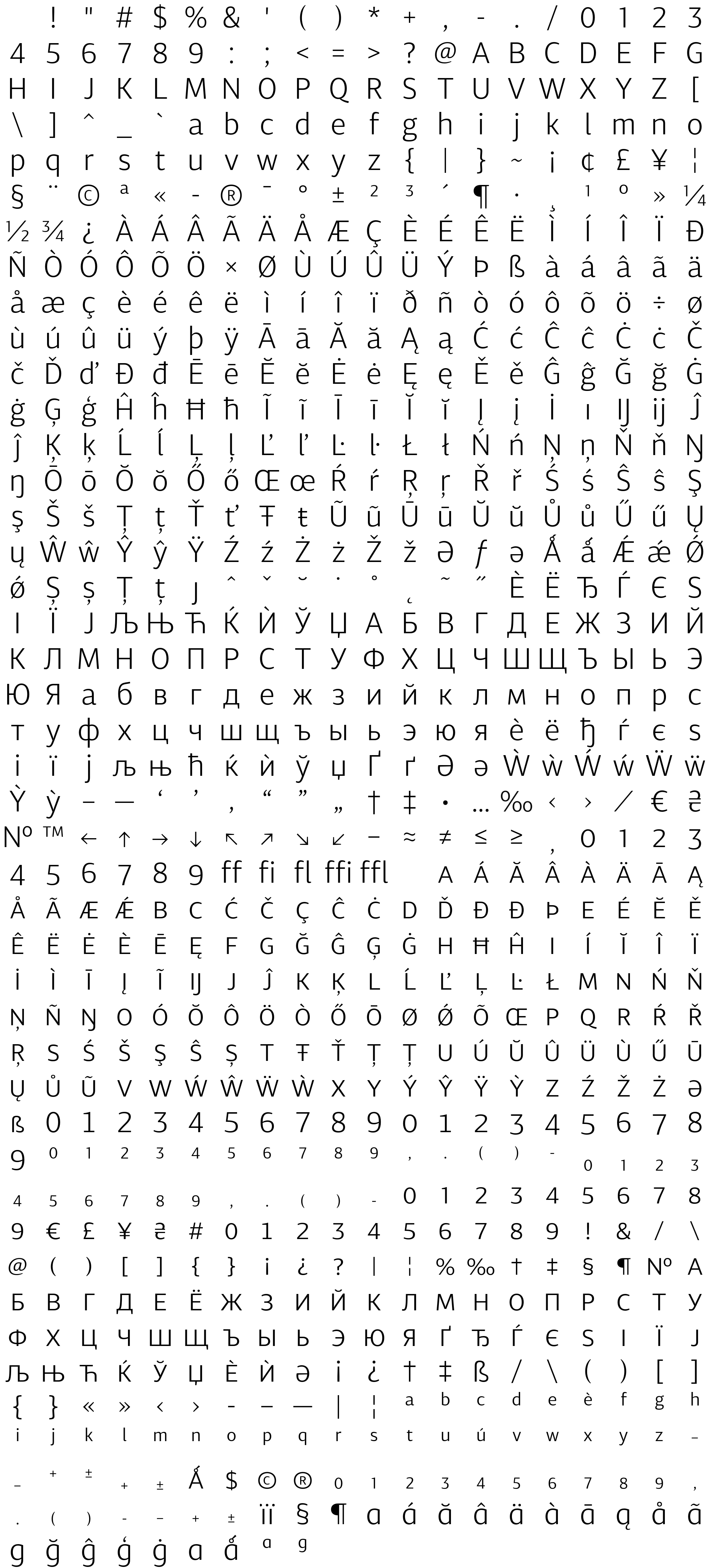 Due to the nature of thumbs' generation process, some of the glyphs in the glyph map may appear cropped.
