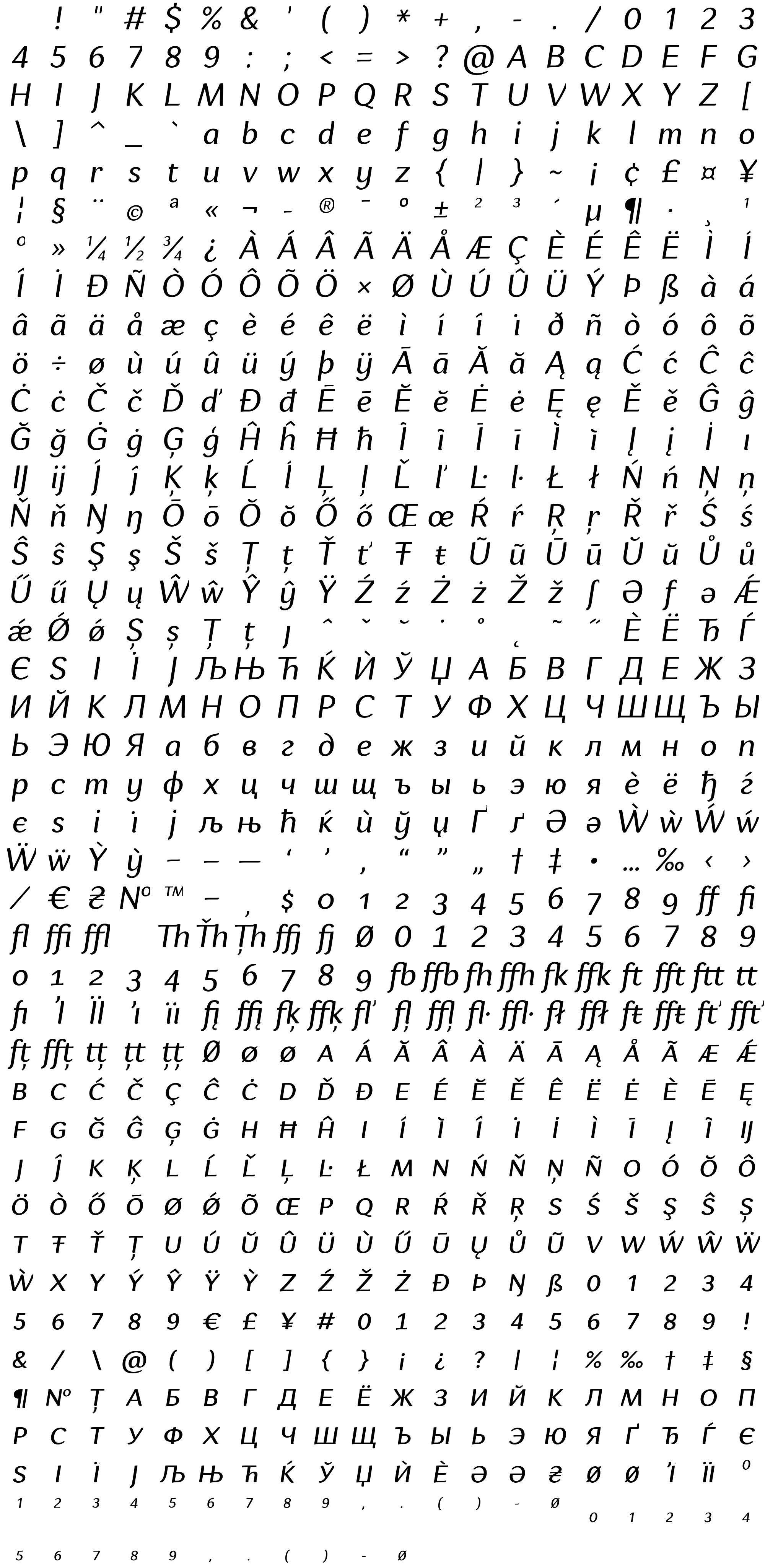 Due to the nature of thumbs' generation process, some of the glyphs in the glyph map may appear cropped.