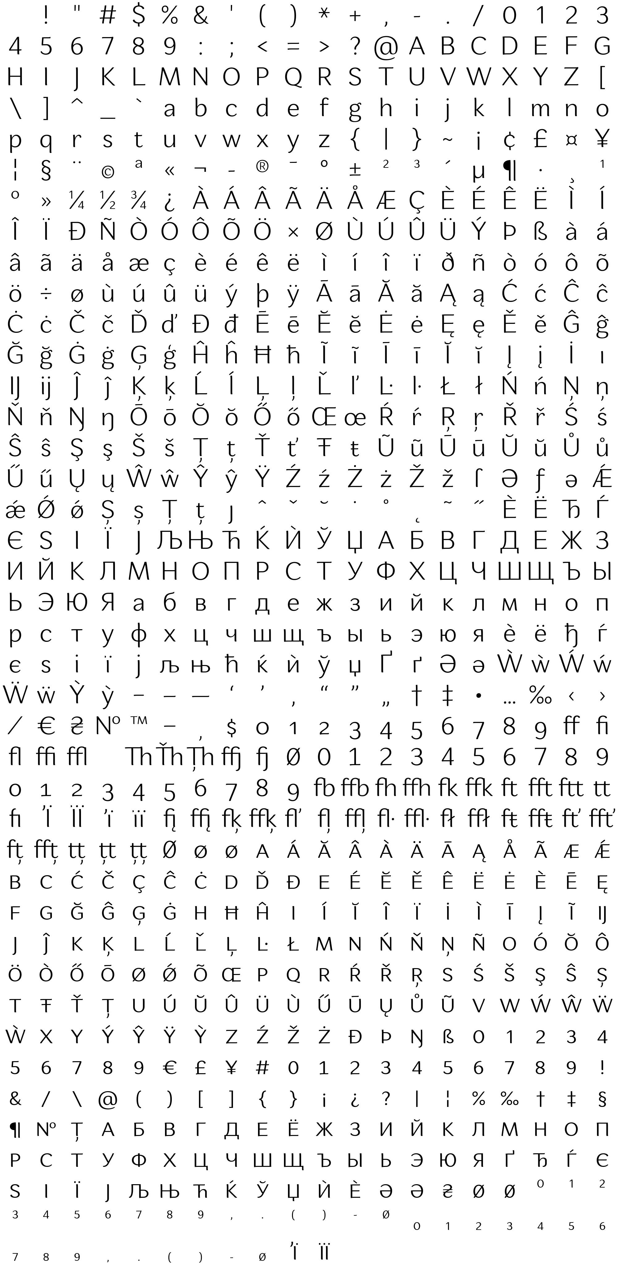 Due to the nature of thumbs' generation process, some of the glyphs in the glyph map may appear cropped.
