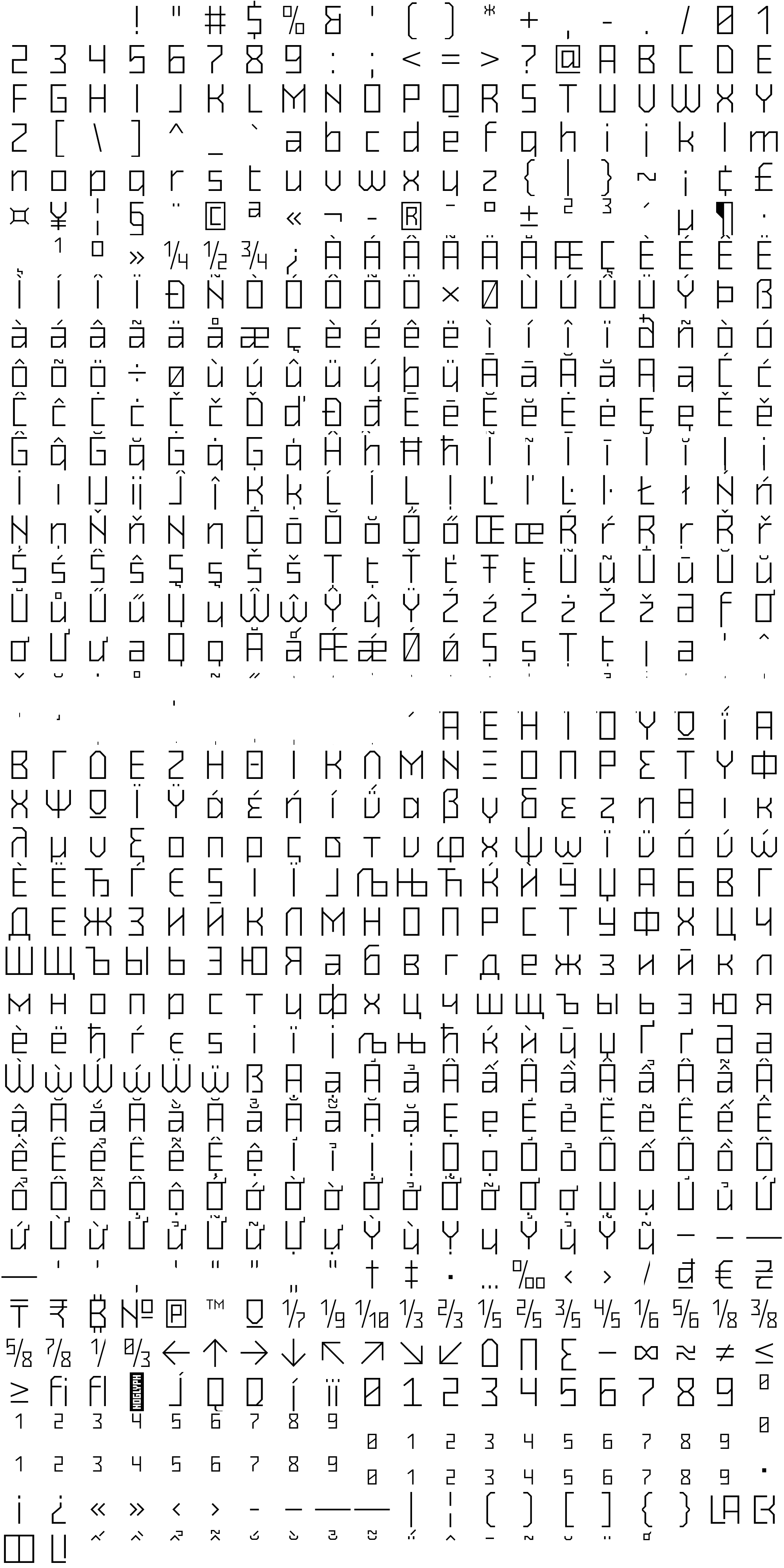 Due to the nature of thumbs' generation process, some of the glyphs in the glyph map may appear cropped.