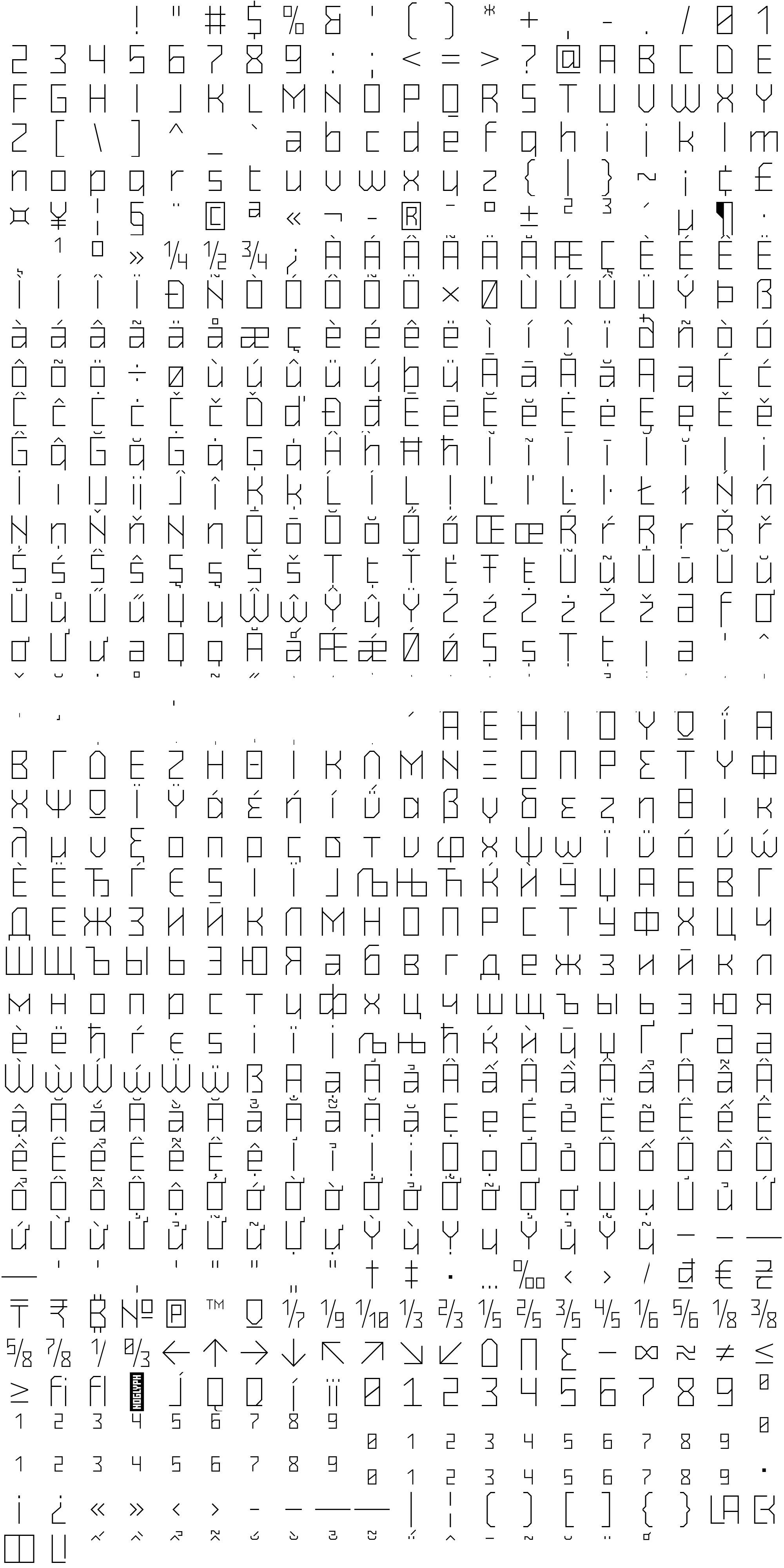 Due to the nature of thumbs' generation process, some of the glyphs in the glyph map may appear cropped.