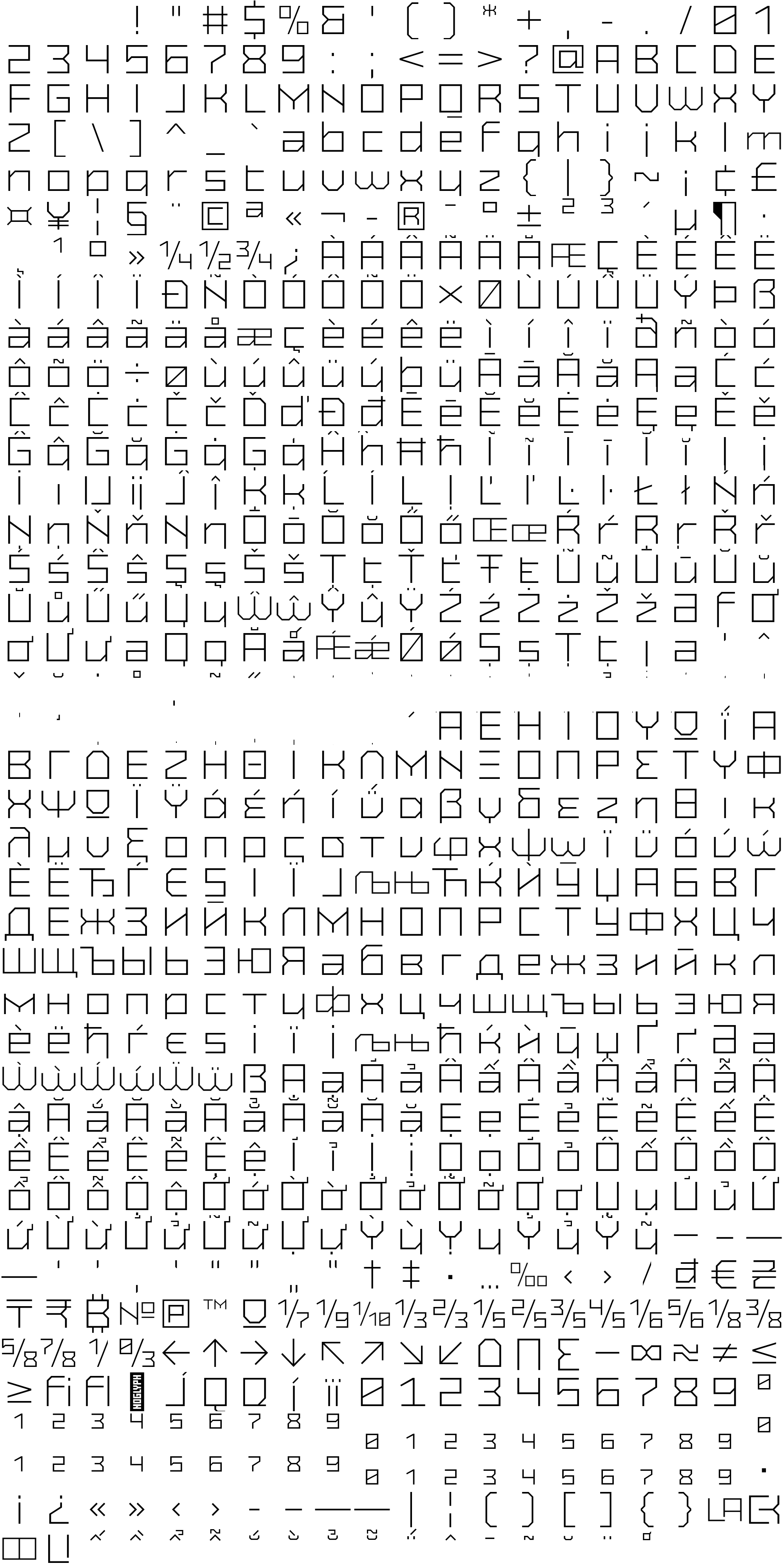 Due to the nature of thumbs' generation process, some of the glyphs in the glyph map may appear cropped.