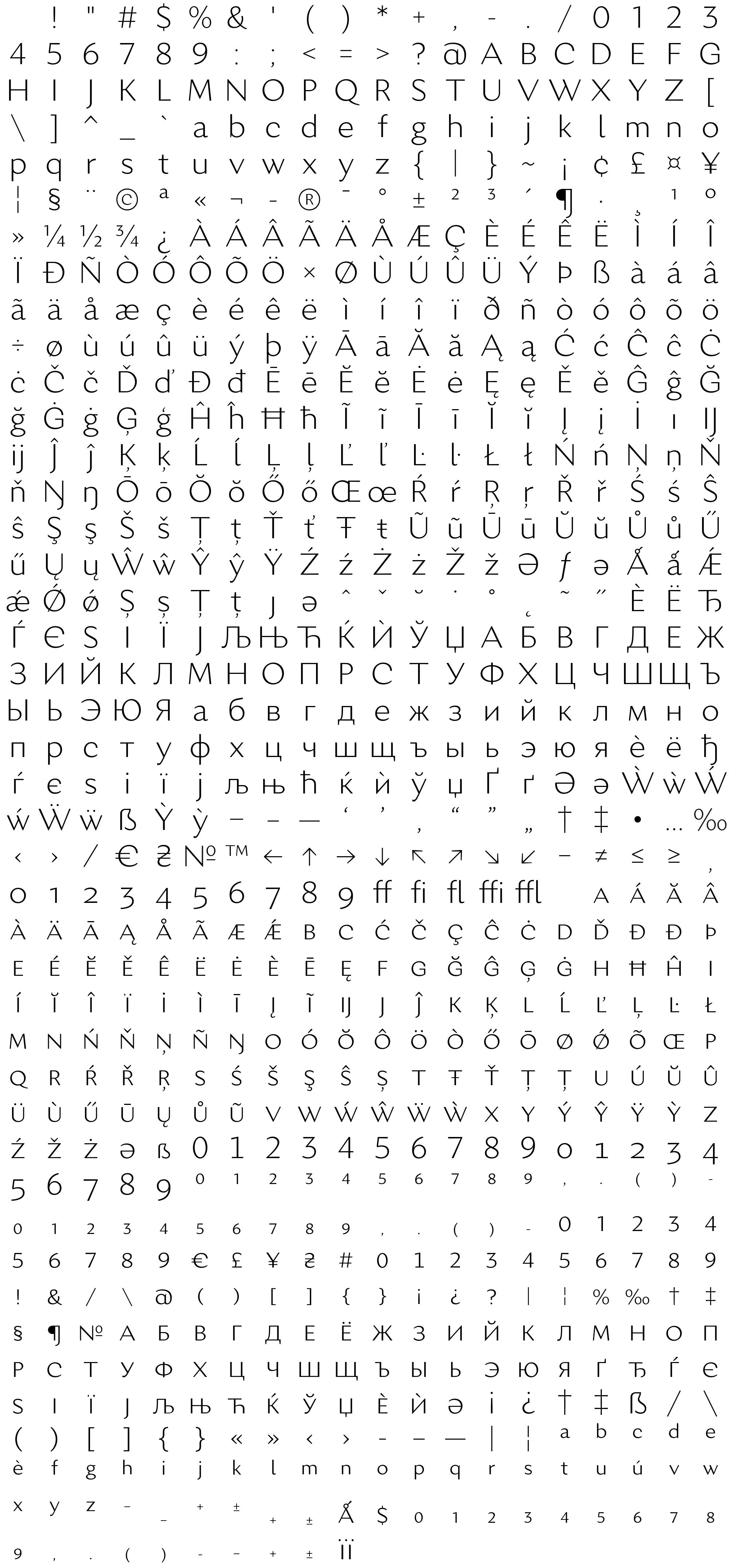 Due to the nature of thumbs' generation process, some of the glyphs in the glyph map may appear cropped.