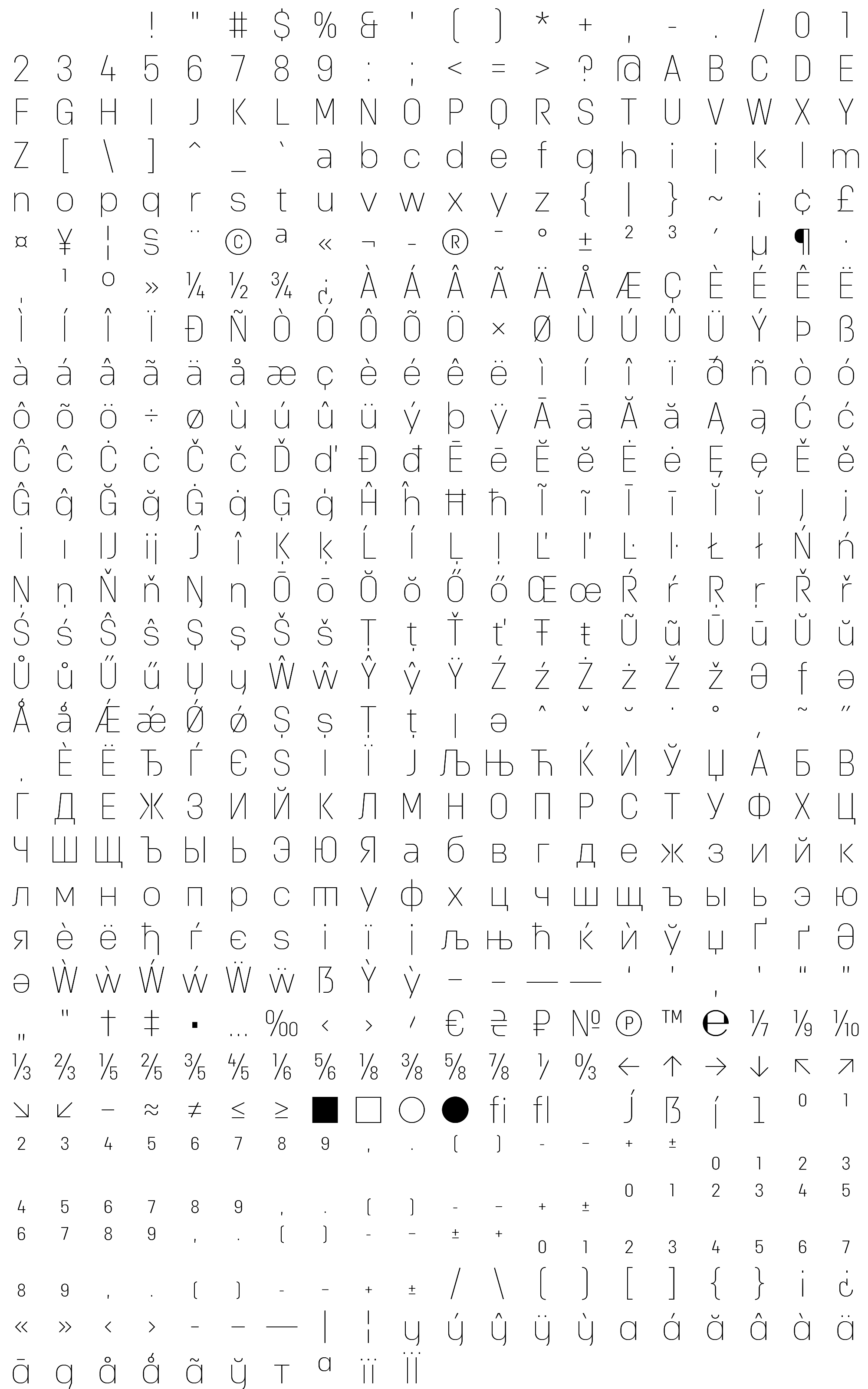 Due to the nature of thumbs' generation process, some of the glyphs in the glyph map may appear cropped.
