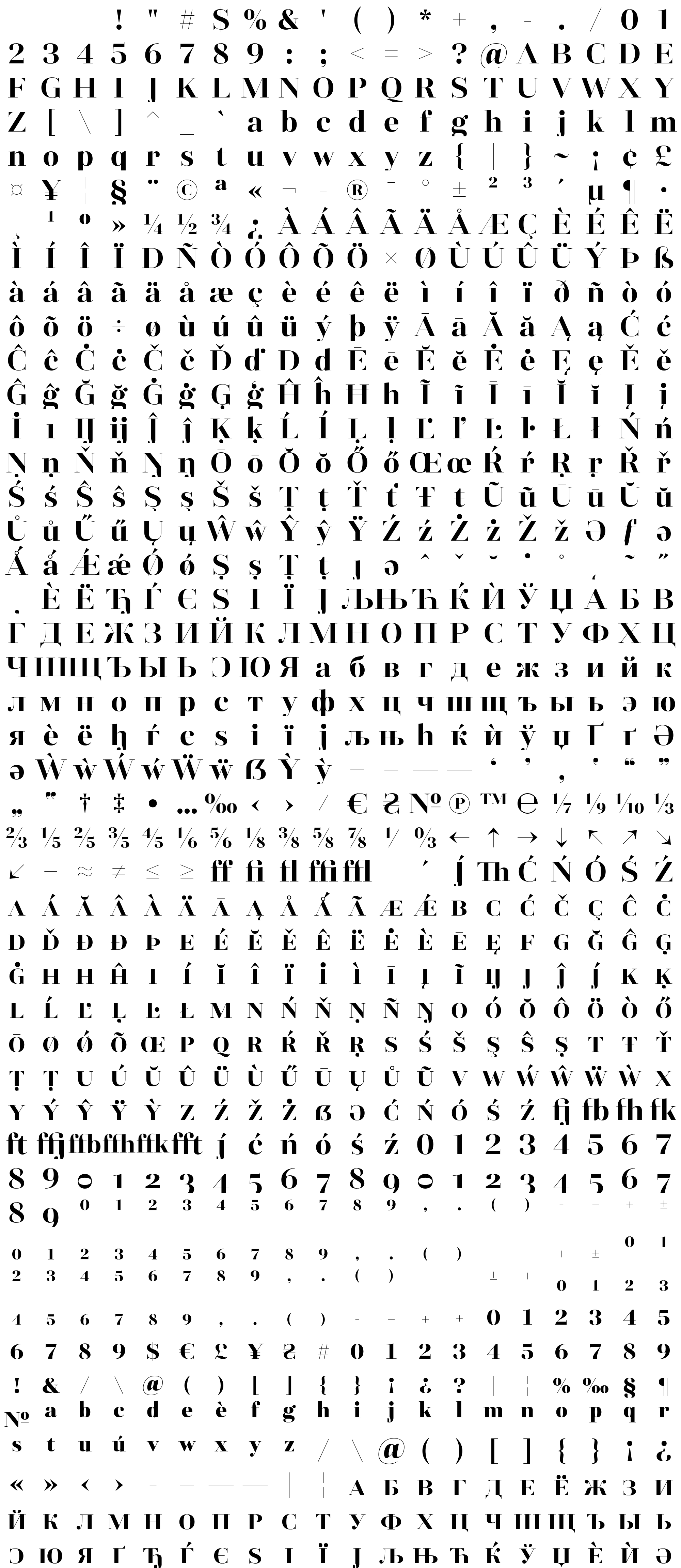 Due to the nature of thumbs' generation process, some of the glyphs in the glyph map may appear cropped.