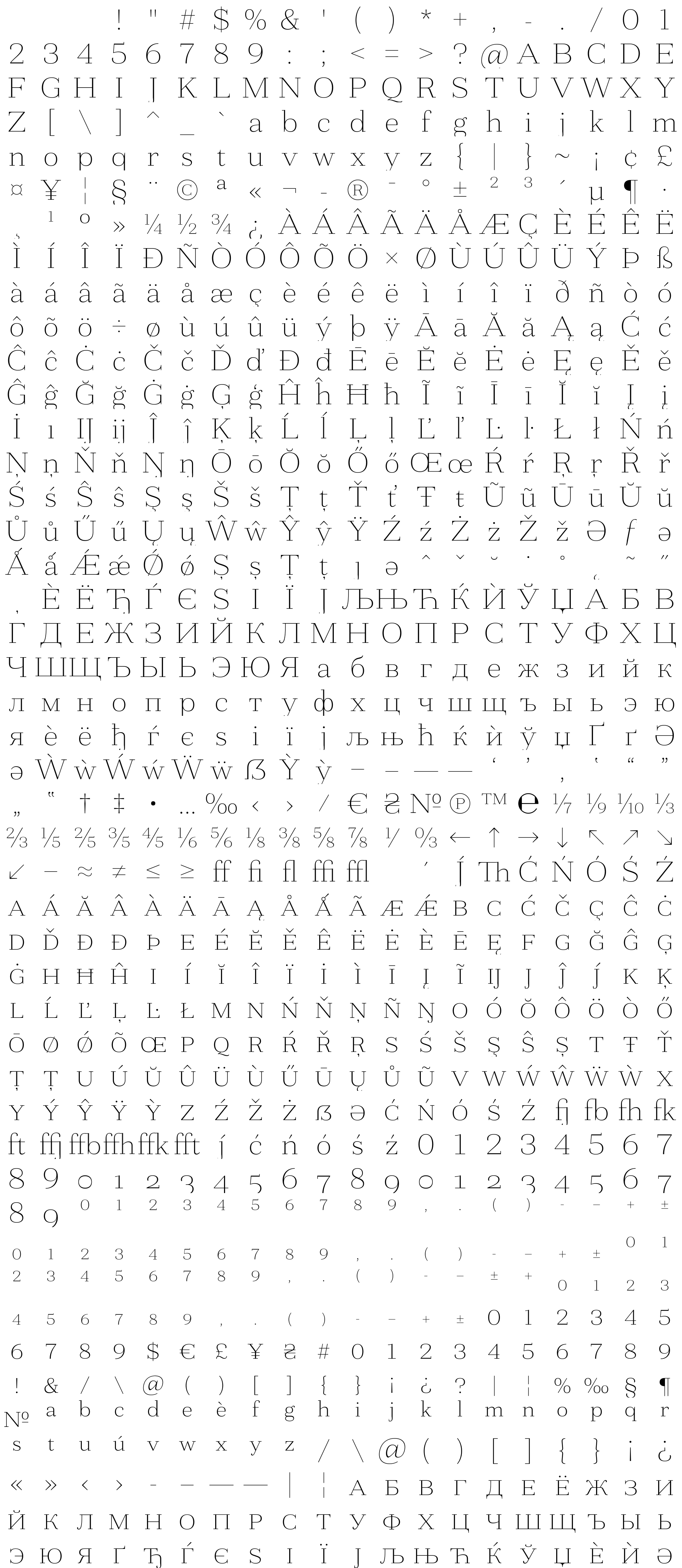Due to the nature of thumbs' generation process, some of the glyphs in the glyph map may appear cropped.
