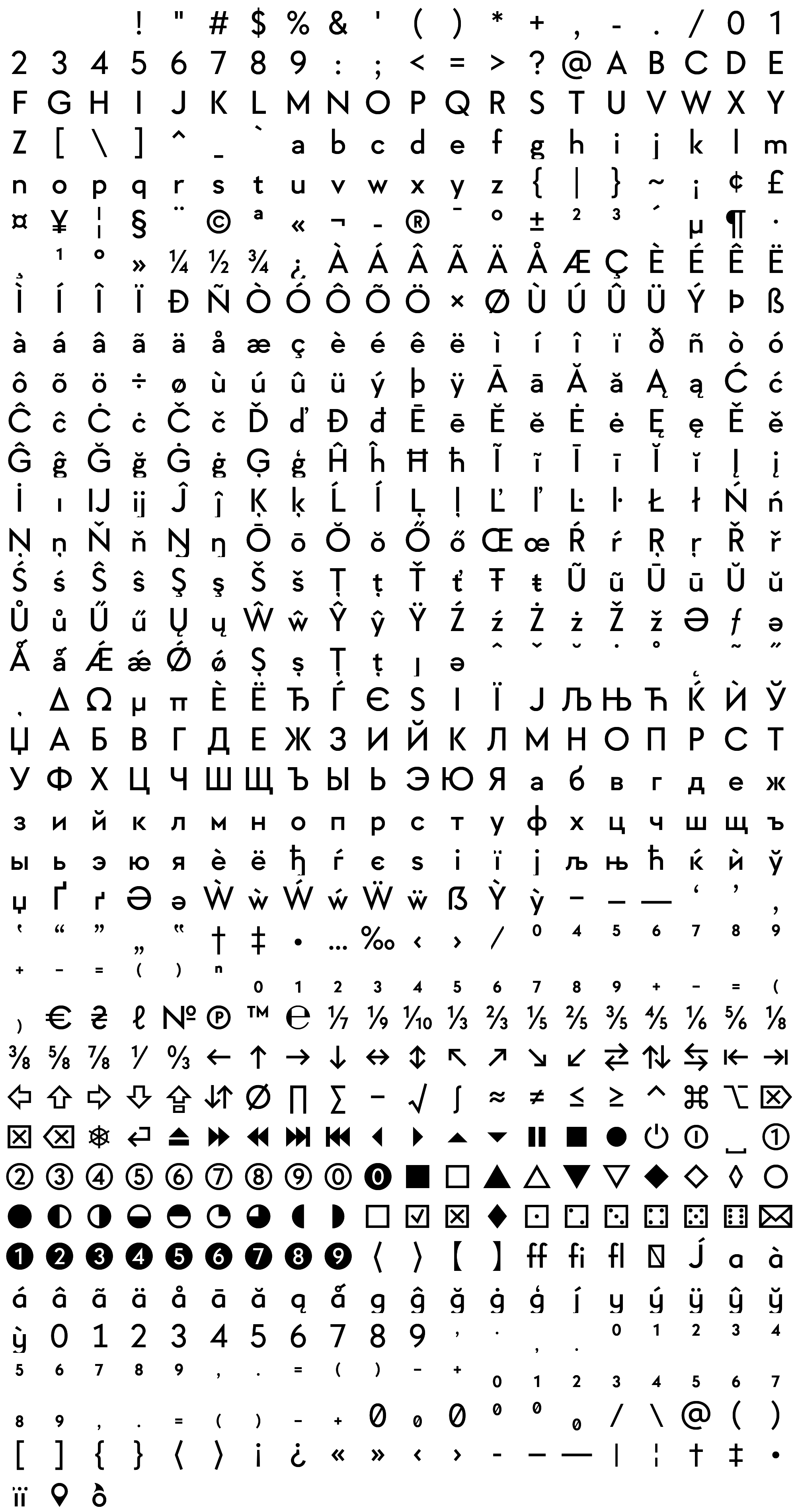 Due to the nature of thumbs' generation process, some of the glyphs in the glyph map may appear cropped.