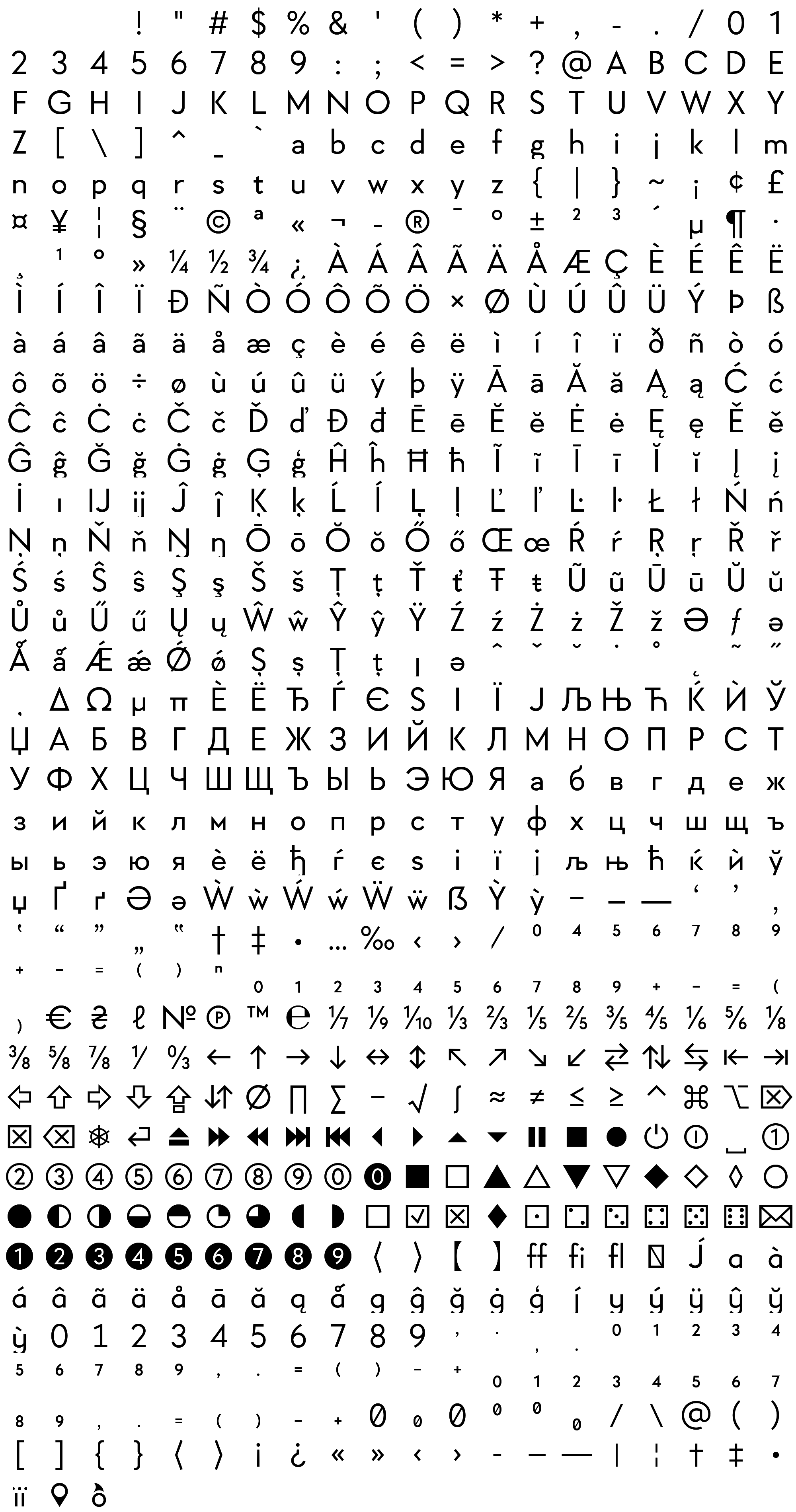 Due to the nature of thumbs' generation process, some of the glyphs in the glyph map may appear cropped.
