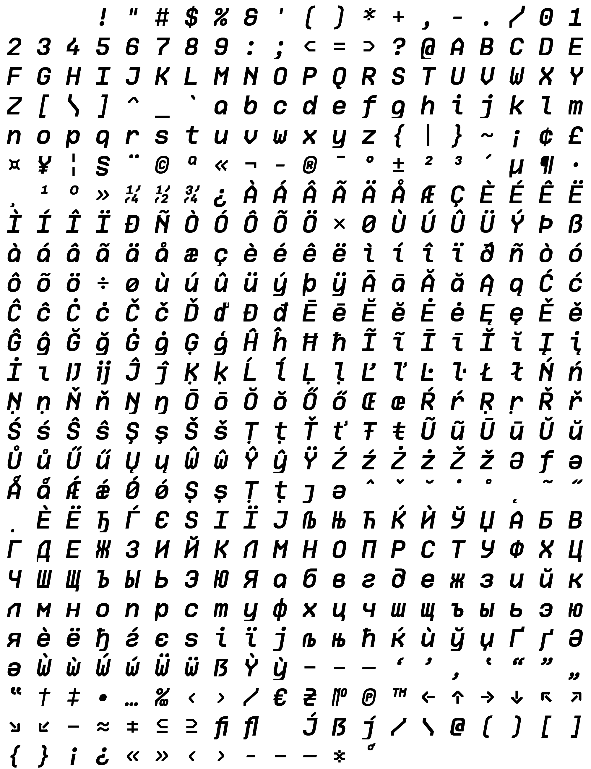 Due to the nature of thumbs' generation process, some of the glyphs in the glyph map may appear cropped.
