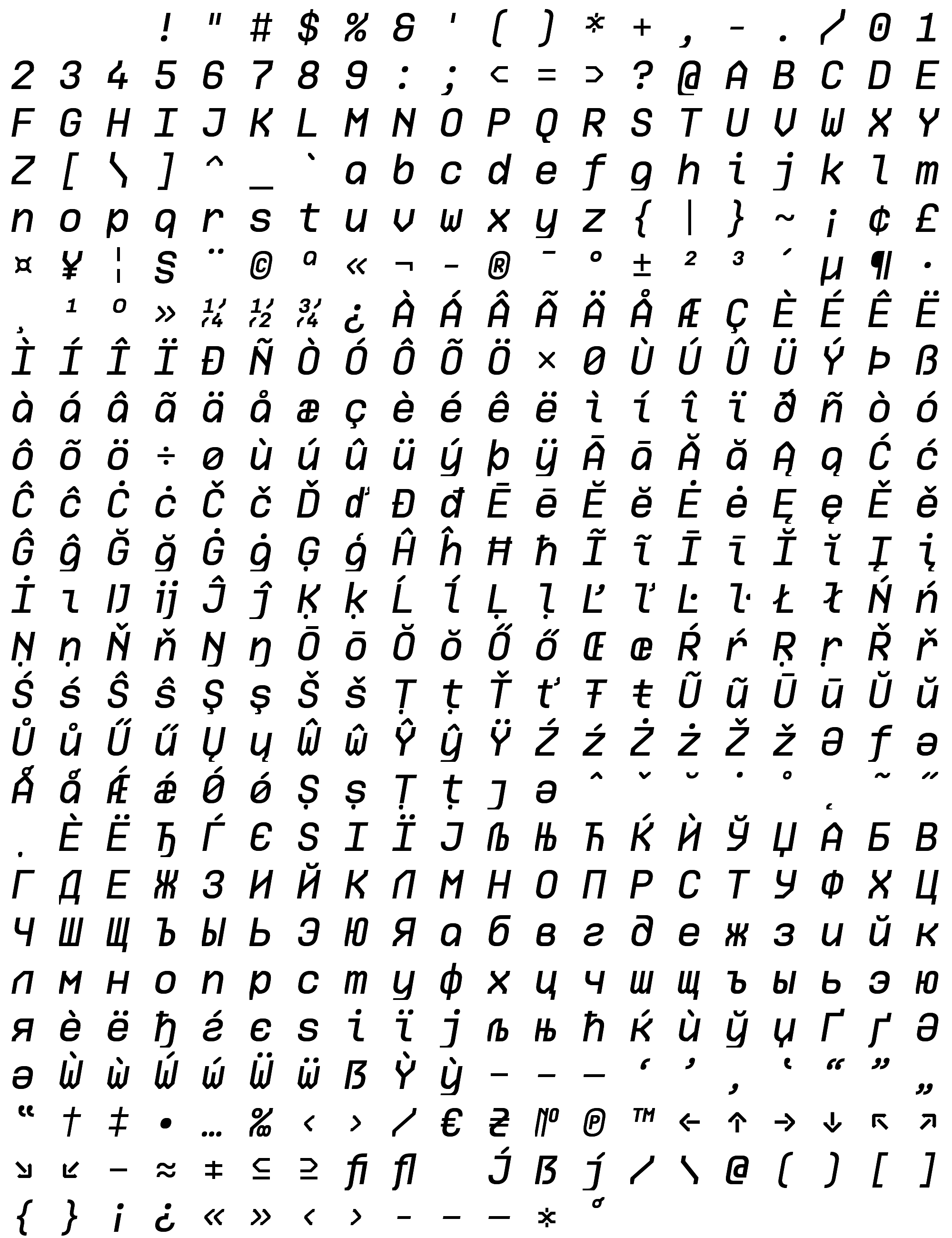 Due to the nature of thumbs' generation process, some of the glyphs in the glyph map may appear cropped.