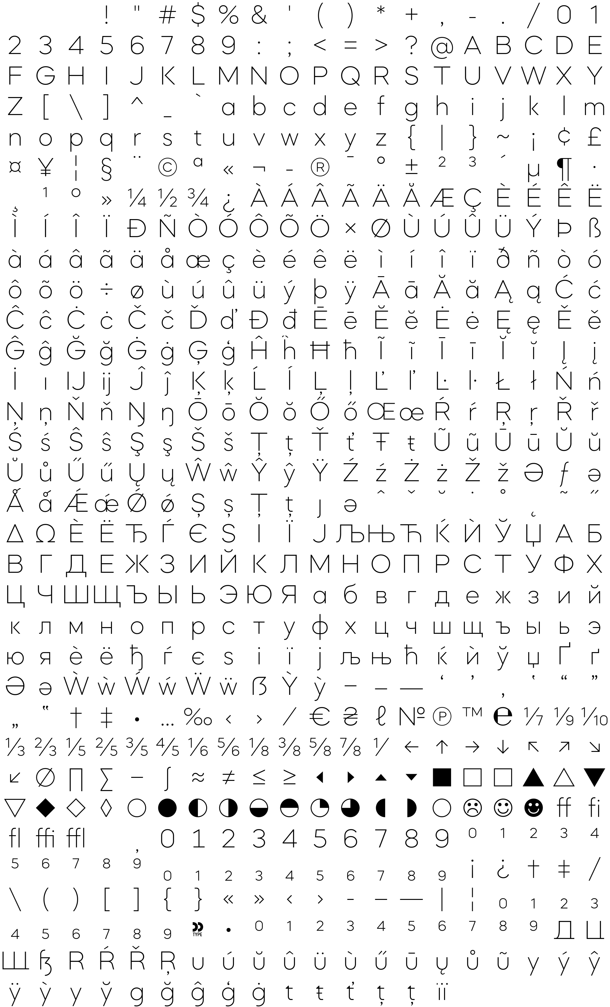 Due to the nature of thumbs' generation process, some of the glyphs in the glyph map may appear cropped.