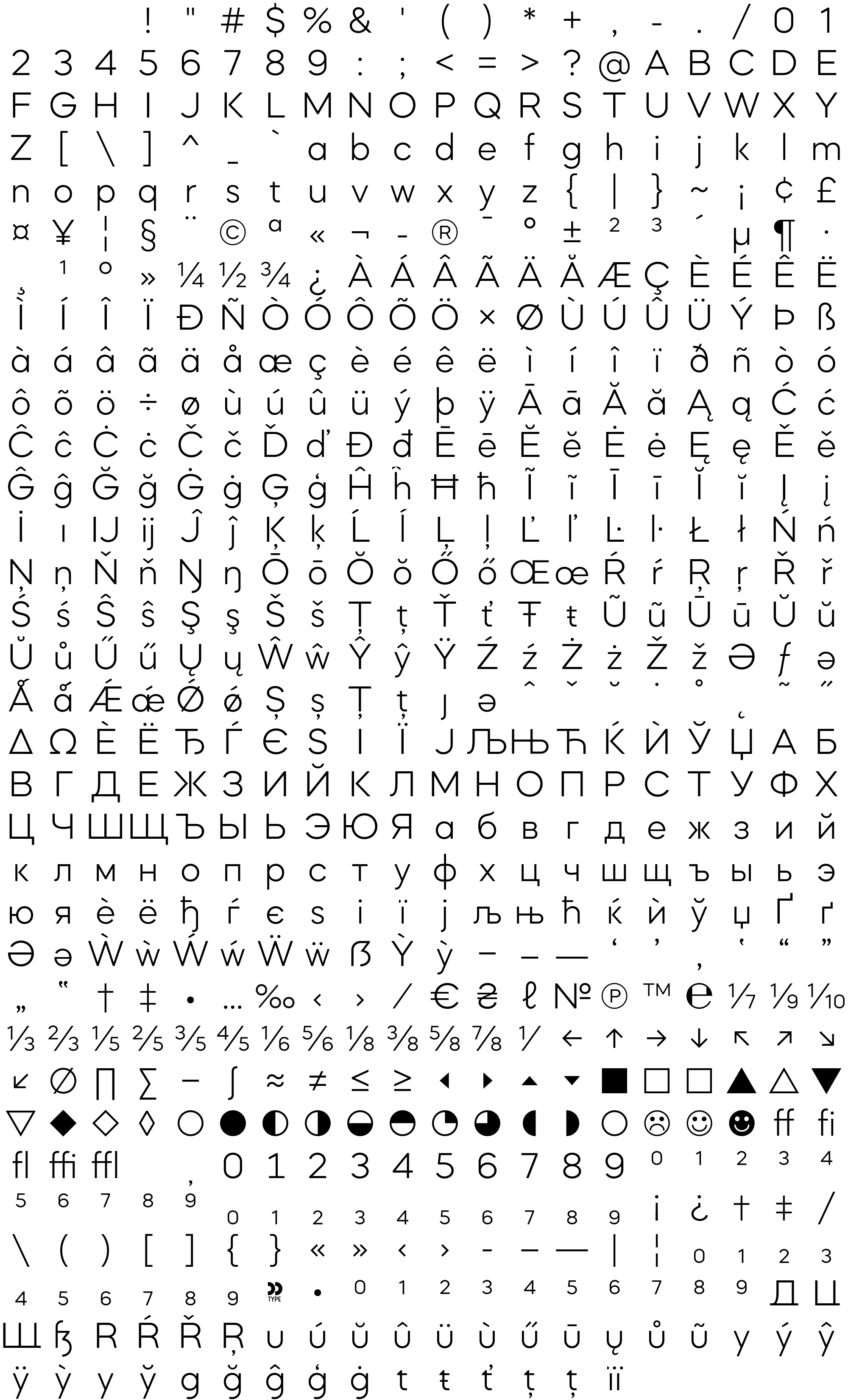 Due to the nature of thumbs' generation process, some of the glyphs in the glyph map may appear cropped.
