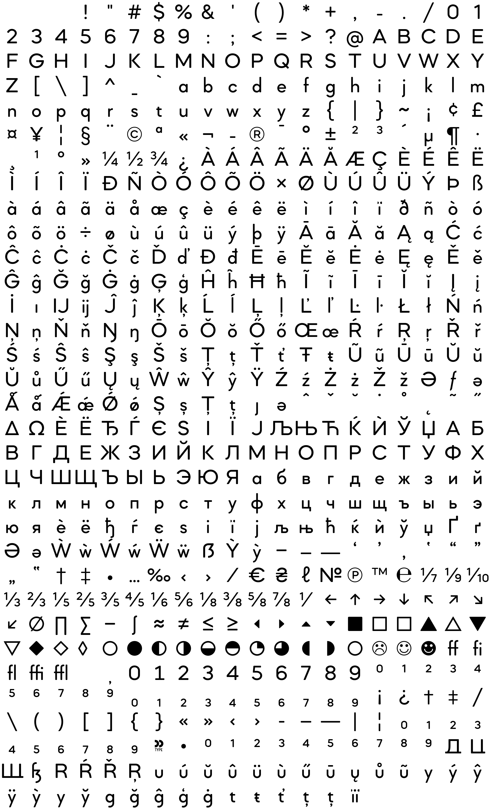 Due to the nature of thumbs' generation process, some of the glyphs in the glyph map may appear cropped.