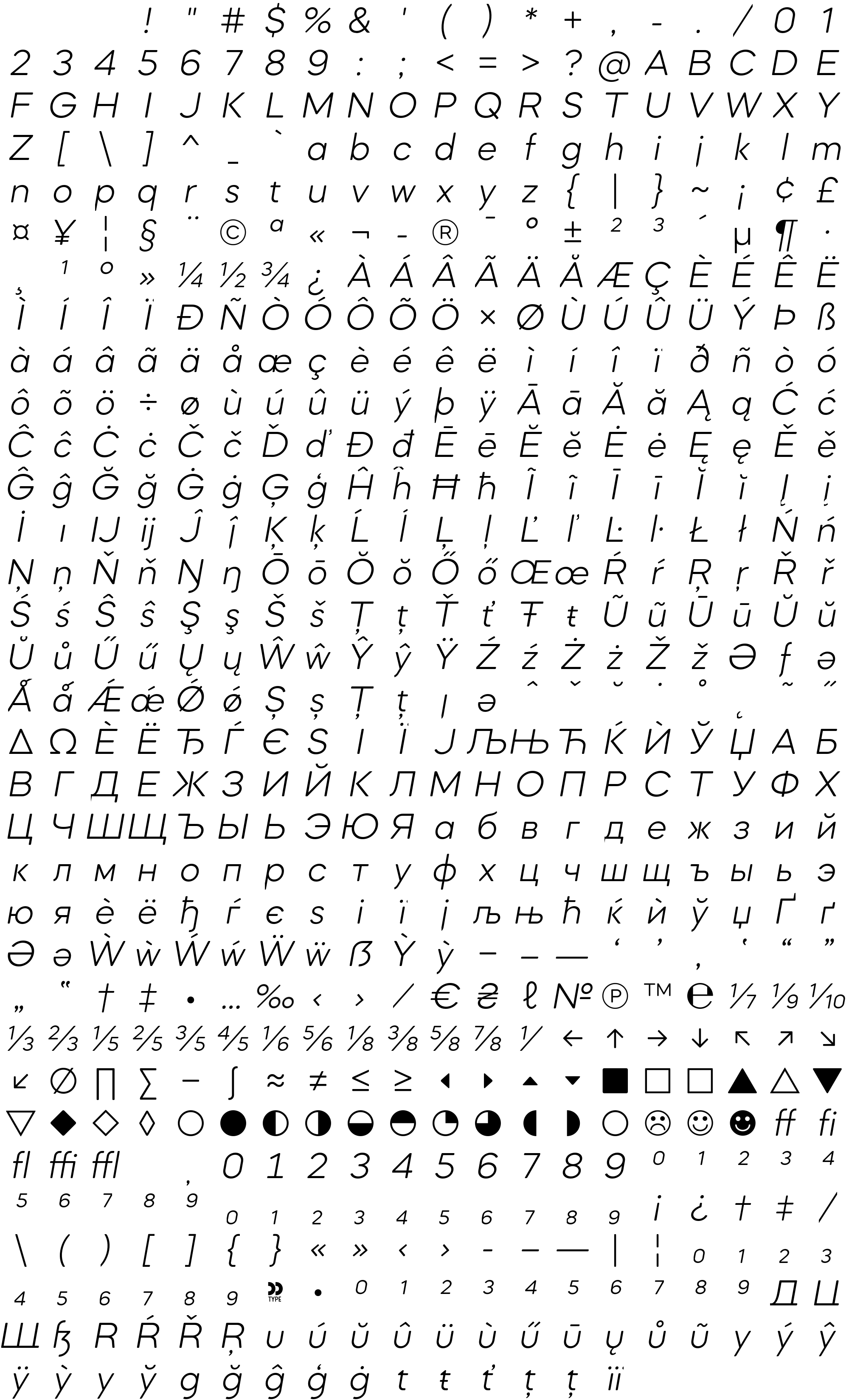 Due to the nature of thumbs' generation process, some of the glyphs in the glyph map may appear cropped.