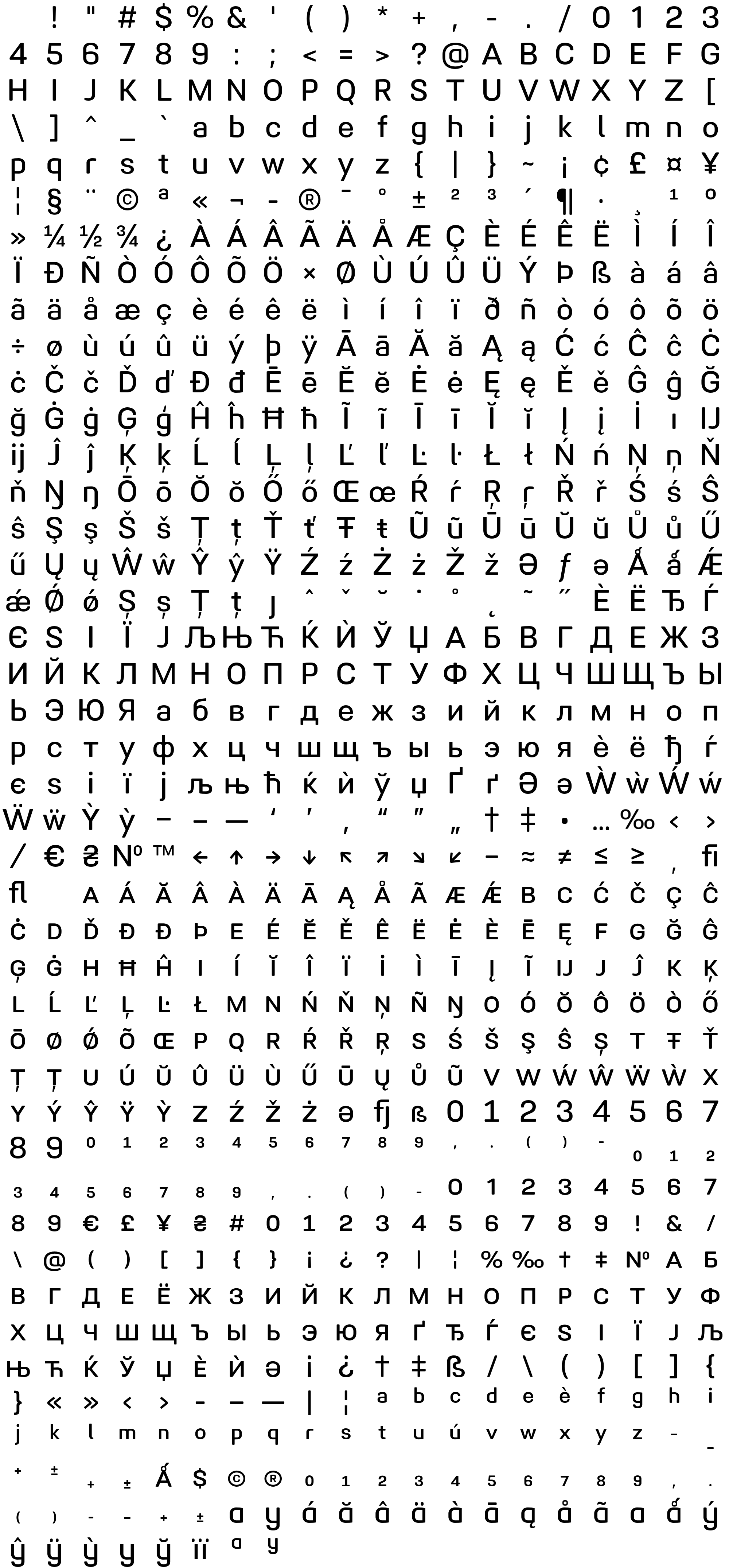 Due to the nature of thumbs' generation process, some of the glyphs in the glyph map may appear cropped.