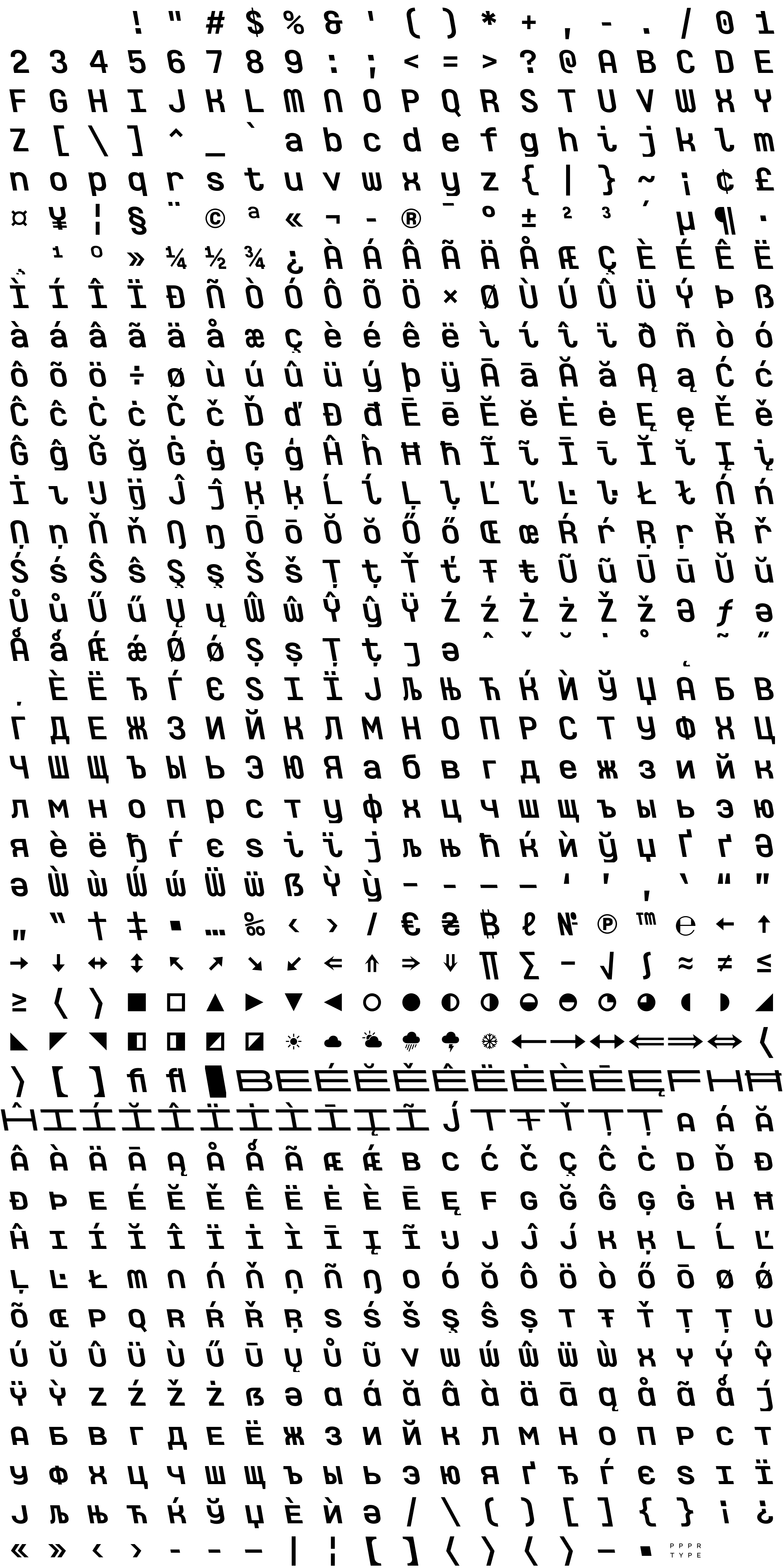 Due to the nature of thumbs' generation process, some of the glyphs in the glyph map may appear cropped.