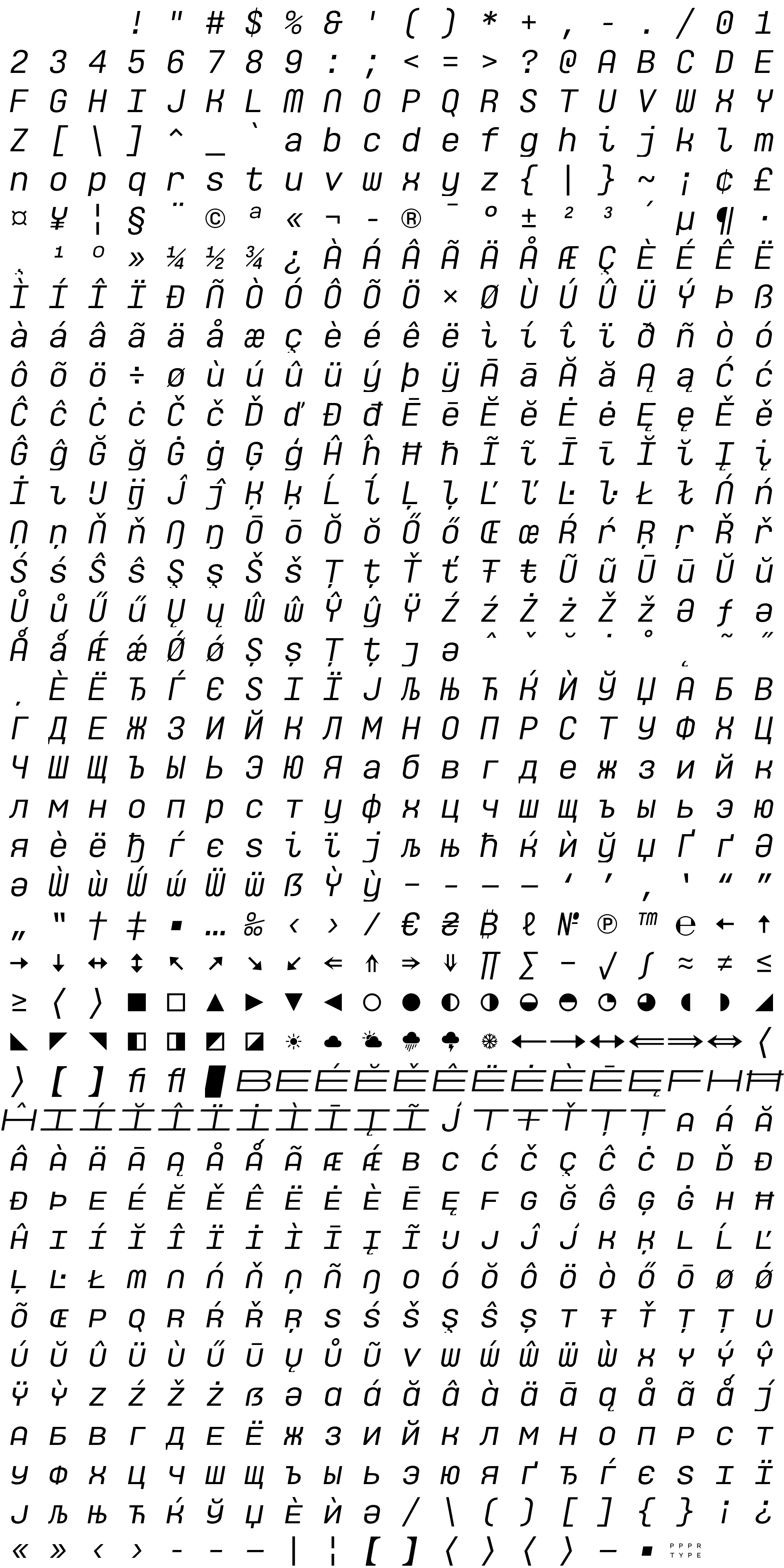 Due to the nature of thumbs' generation process, some of the glyphs in the glyph map may appear cropped.