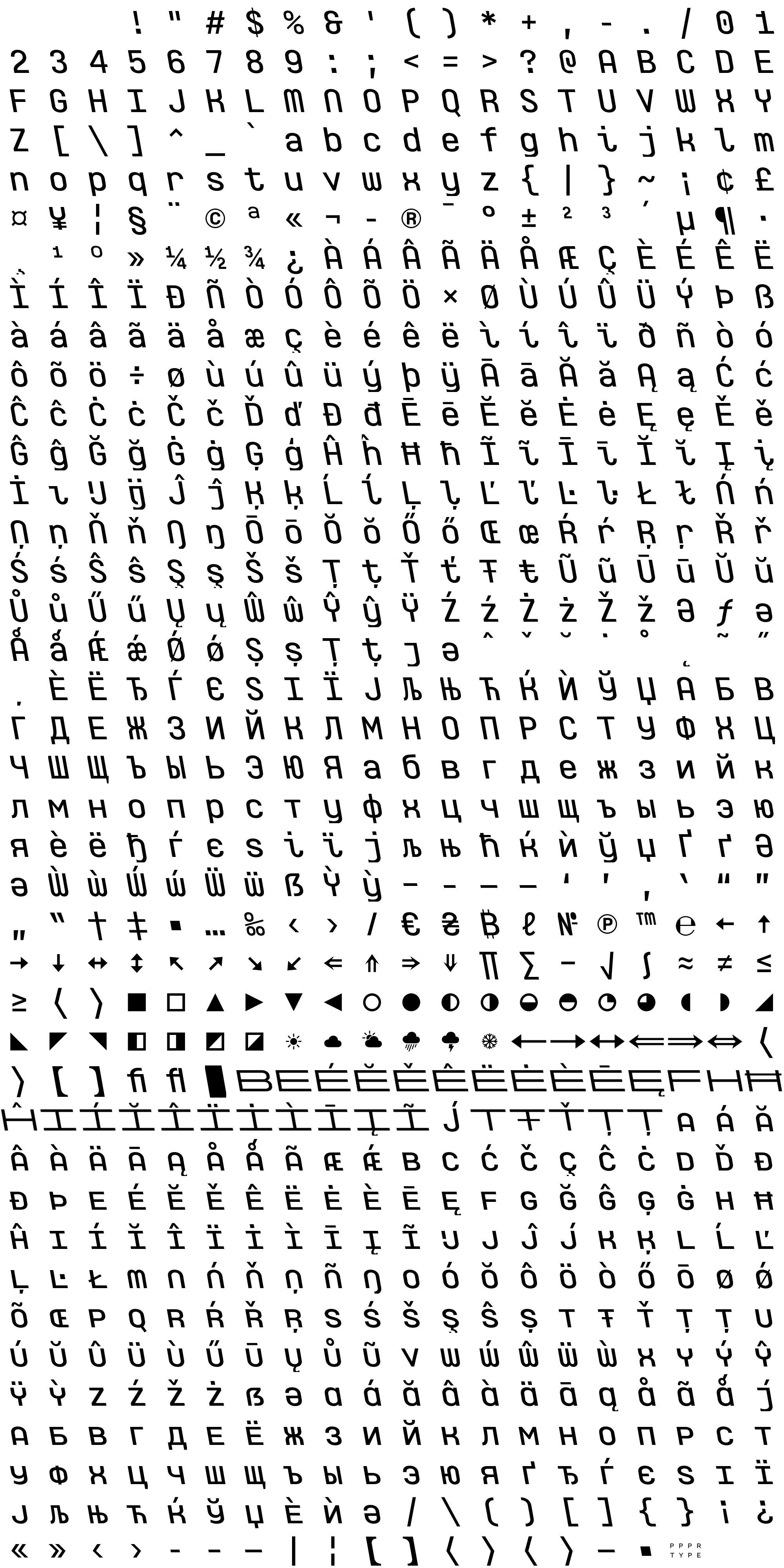 Due to the nature of thumbs' generation process, some of the glyphs in the glyph map may appear cropped.