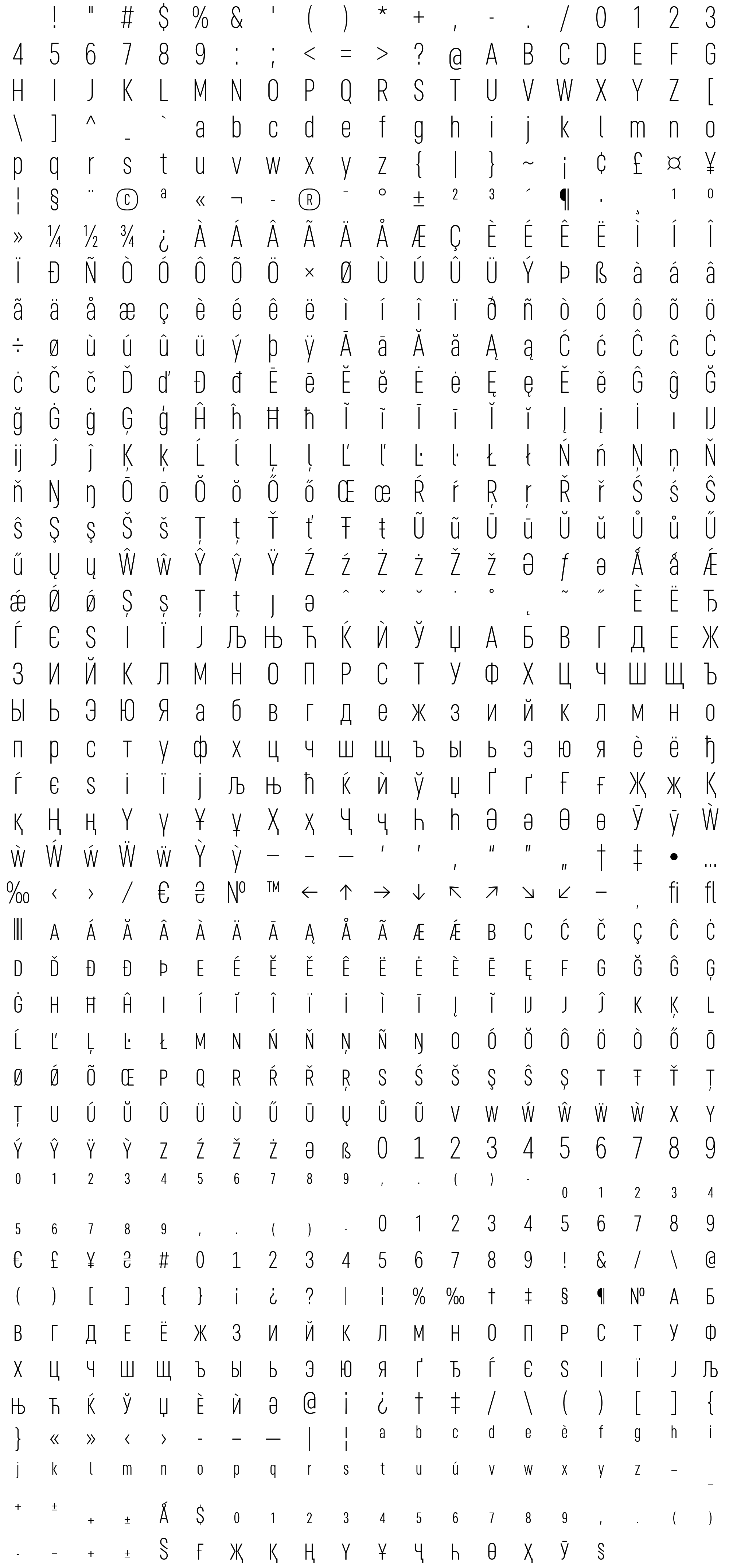 Due to the nature of thumbs' generation process, some of the glyphs in the glyph map may appear cropped.