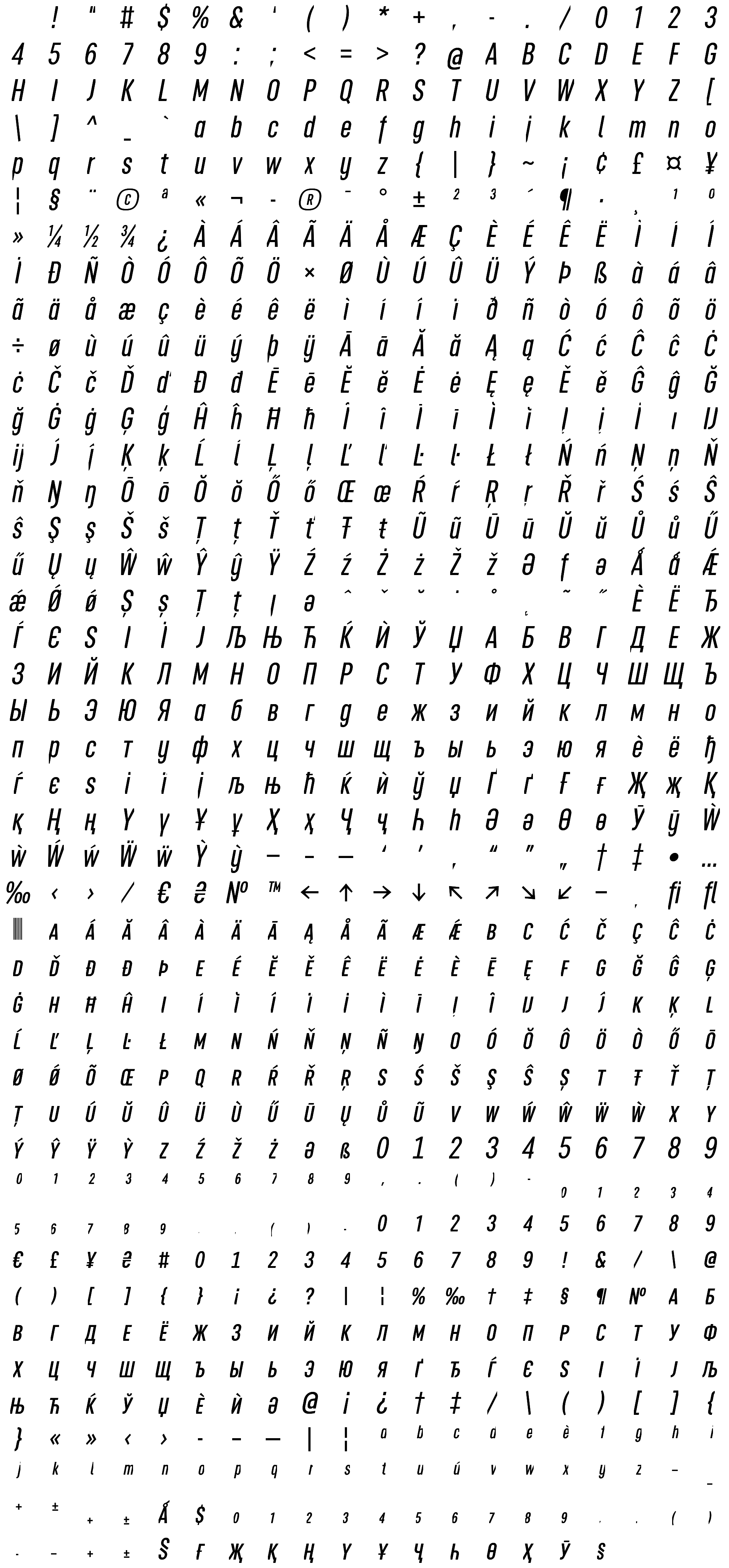 Due to the nature of thumbs' generation process, some of the glyphs in the glyph map may appear cropped.