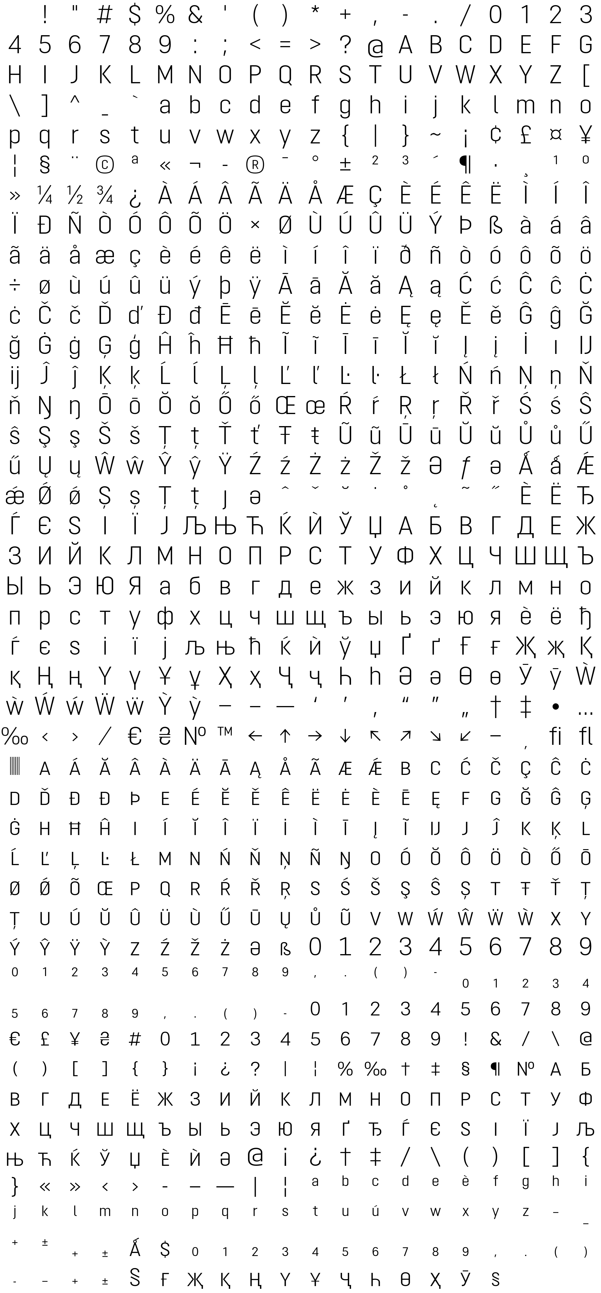 Due to the nature of thumbs' generation process, some of the glyphs in the glyph map may appear cropped.