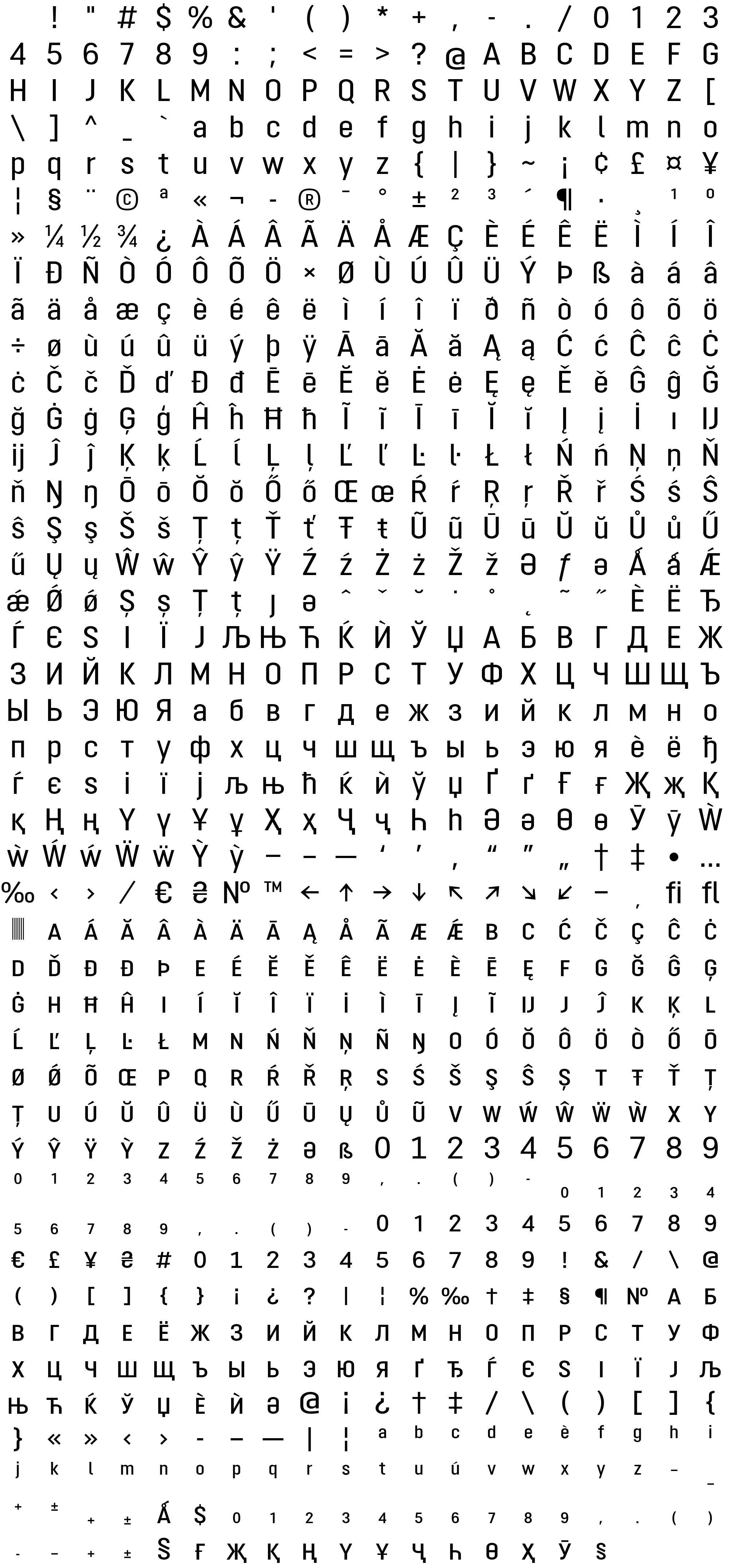 Due to the nature of thumbs' generation process, some of the glyphs in the glyph map may appear cropped.