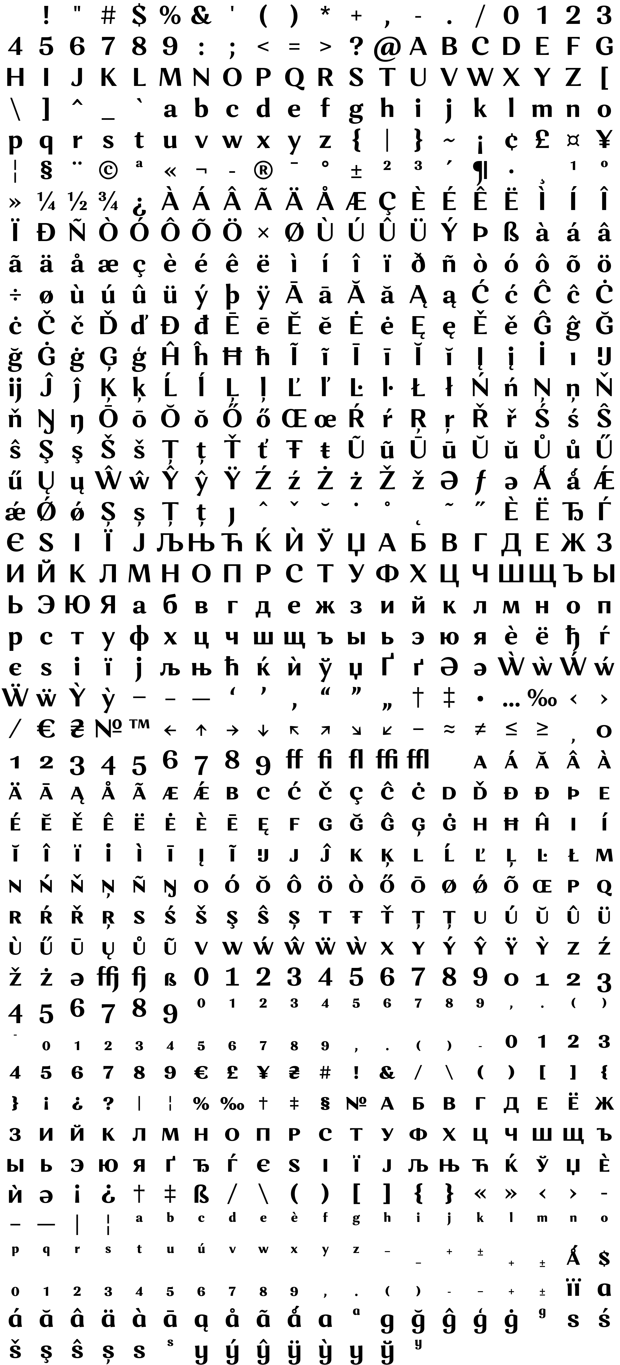 Due to the nature of thumbs' generation process, some of the glyphs in the glyph map may appear cropped.