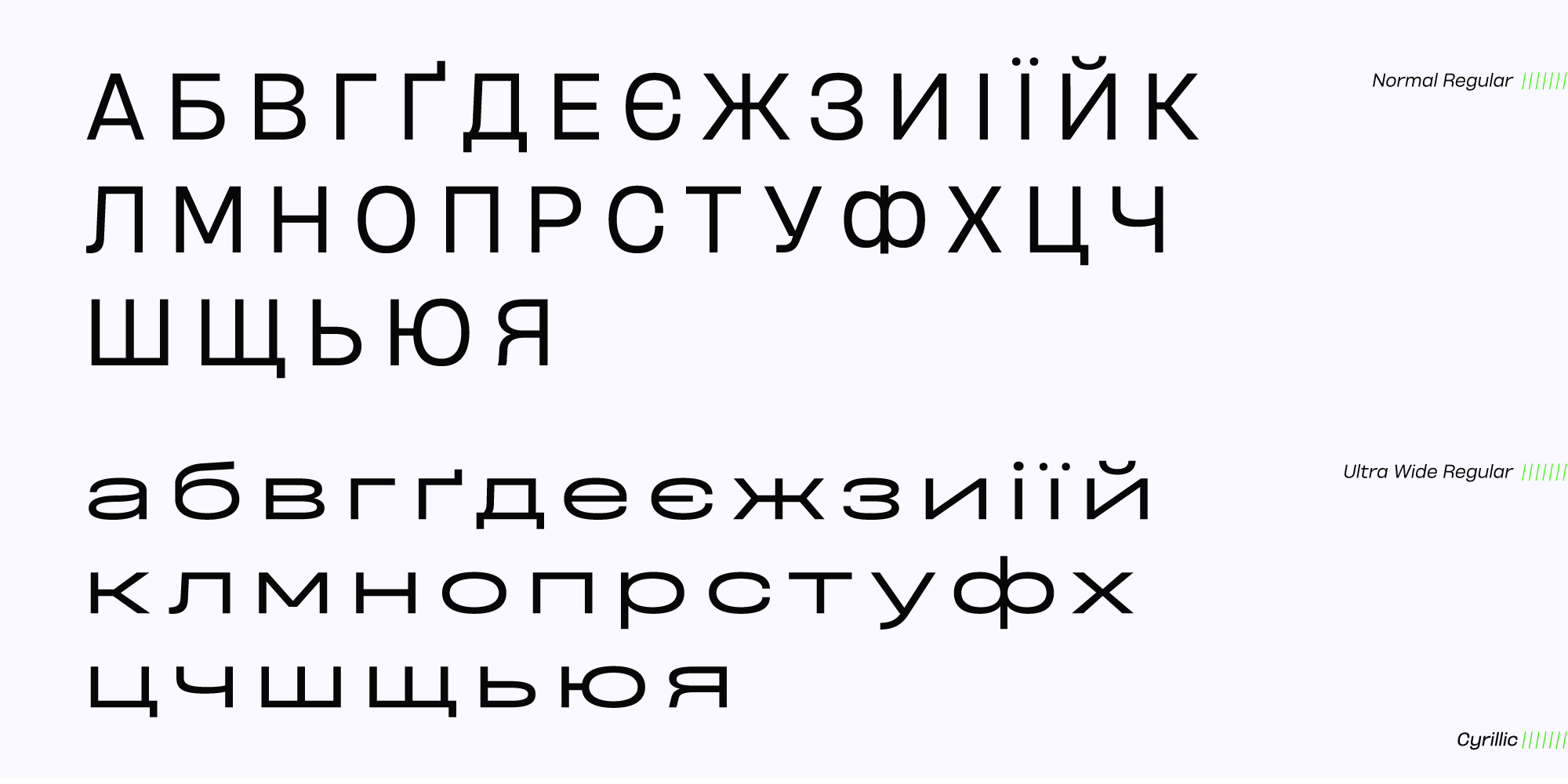 Rich language support, which includes Cyrillic and spans 131 language ovarall, makes Otoiwo Grotesk a worthy choice for brands that strive to reach international audience.