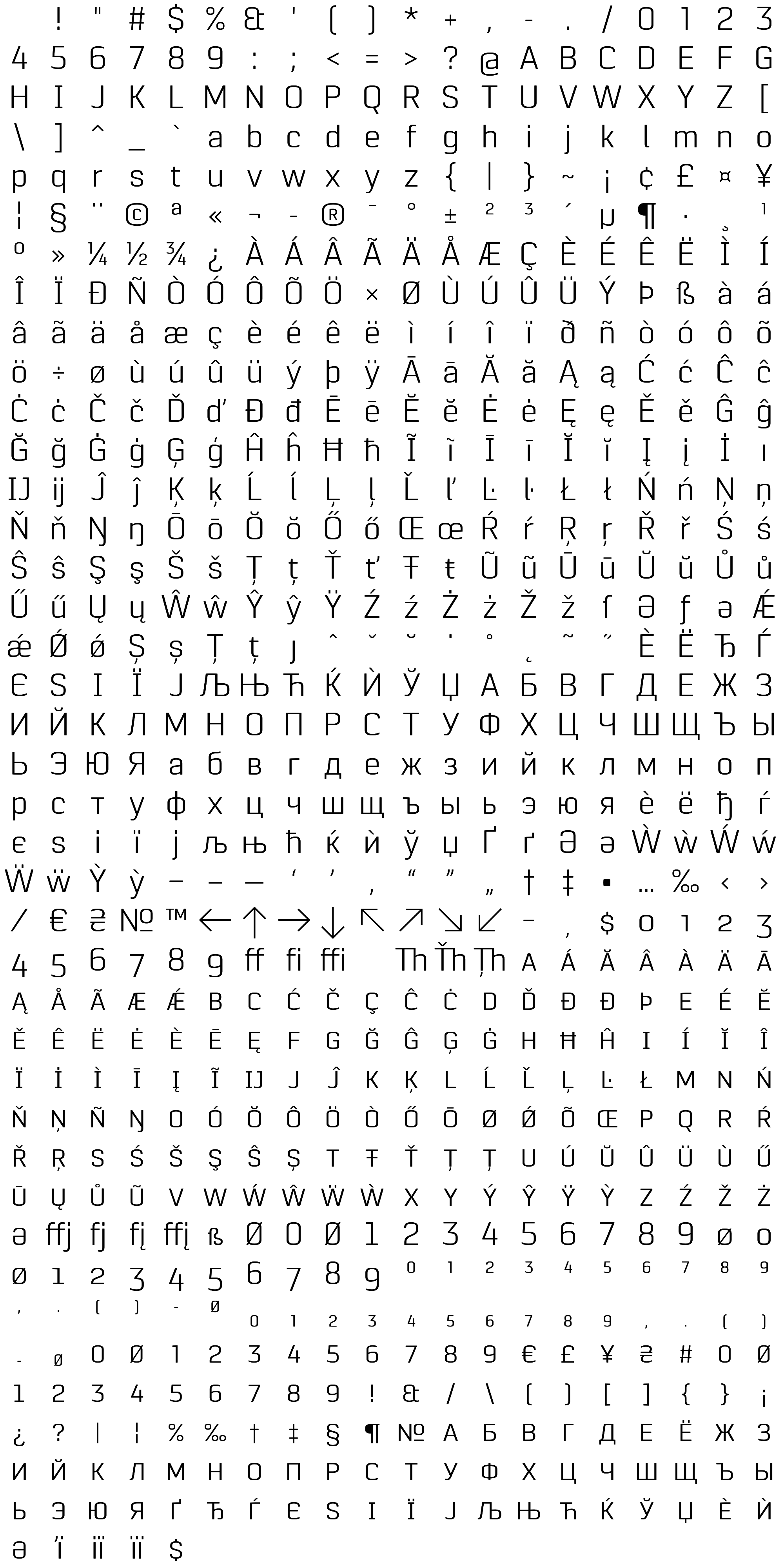 Due to the nature of thumbs' generation process, some of the glyphs in the glyph map may appear cropped.