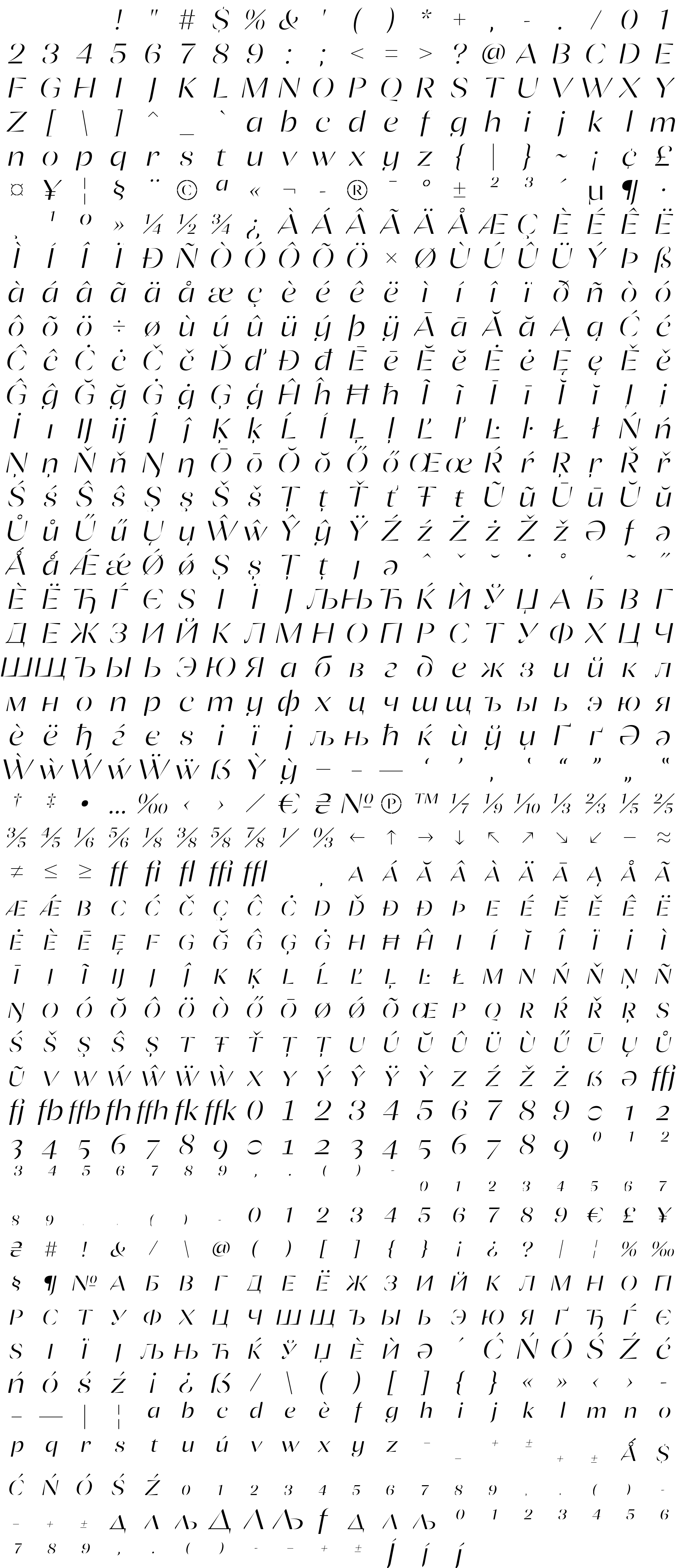 Due to the nature of thumbs' generation process, some of the glyphs in the glyph map may appear cropped.
