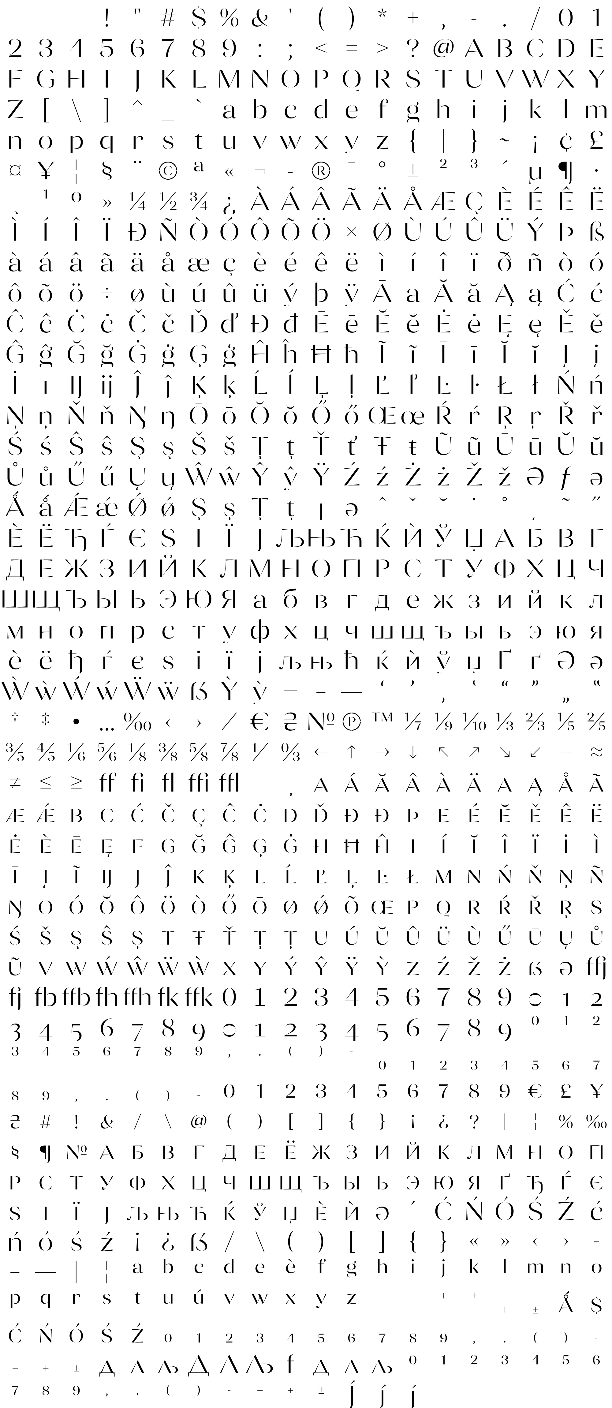 Due to the nature of thumbs' generation process, some of the glyphs in the glyph map may appear cropped.